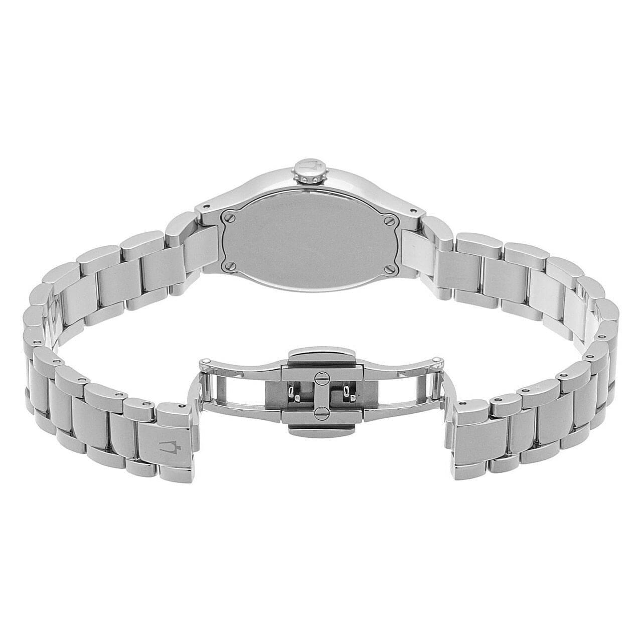 Bulova 96R191 Diamond Gallery Women's Watch with white dial and silver stainless steel band, featuring diamond accents.