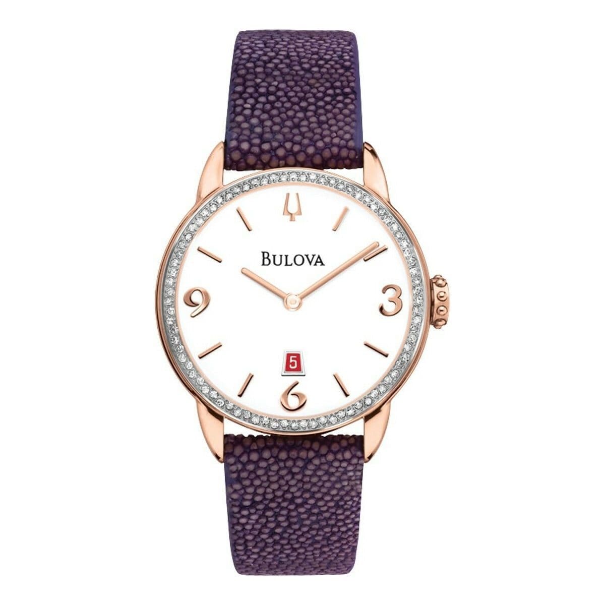 The Bulova 98R196 Interchangeable Purple Stingray Leather Women's Diamond Watch makes for an ideal gift for birthdays, anniversaries, or any special occasion. Its elegant design and luxurious features are sure to delight any recipient. Whether you're treating yourself or surprising a loved one, this watch is a timeless choice.