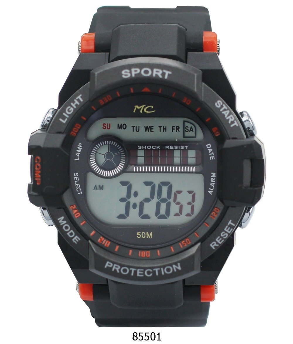 The bold orange color of the digital display makes this watch a versatile accessory that can complement various outfits. Whether you're dressing up for a casual outing or heading to the gym, the Montres Carlo Burbank watch adds a pop of color and style to your look. Its modern design appeals to both men and women, making it a great unisex option.