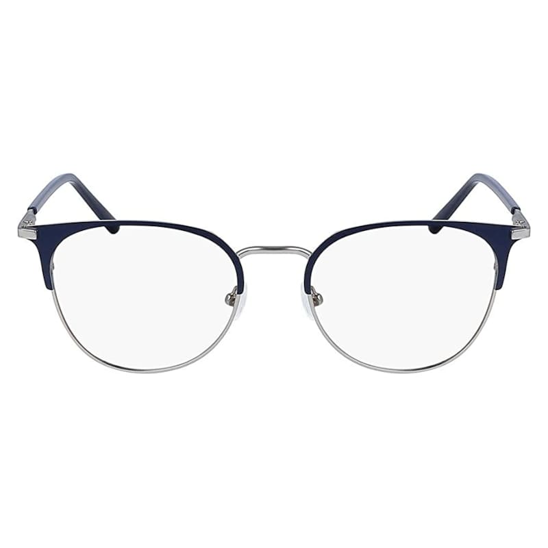 These eyeglasses come with a range of features that make them a must-have accessory. The frame is made from high-quality metal, ensuring longevity and resistance to wear and tear. The satin navy color is versatile, making it easy to pair with various outfits, whether casual or formal. The round frame shape is a timeless design that suits a variety of face shapes, adding a fashionable touch to your appearance.