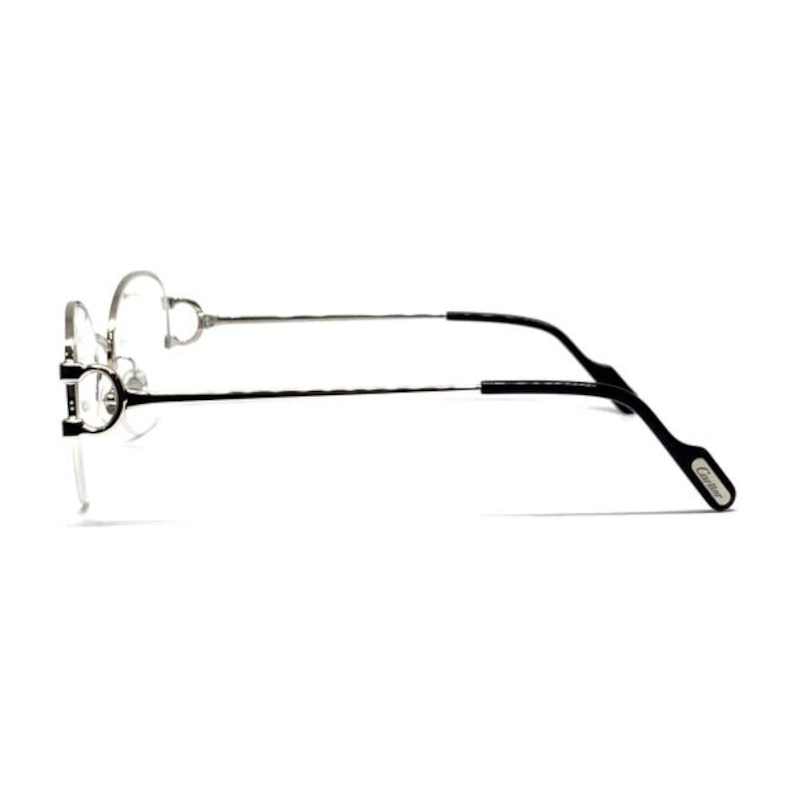 Crafted from premium metal, the silver frame not only exudes luxury but also ensures durability. The choice of materials reflects Cartier's commitment to quality and craftsmanship, providing you with a product that stands the test of time. The demo lens included in the frame allows for easy customization, so you can add your prescription lenses for optimal vision.