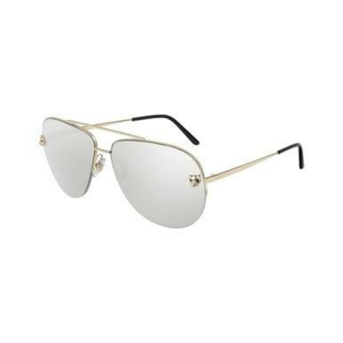 The Cartier CT0065S-007 Gold Aviator Silver Mirror Lens Women's Metal Sunglasses are a stunning addition to any fashion-forward woman's accessory collection. Designed by the renowned luxury brand Cartier, these sunglasses embody elegance and sophistication. With their unique aviator shape and high-quality materials, they are not just a fashion statement but also a functional piece of eyewear.