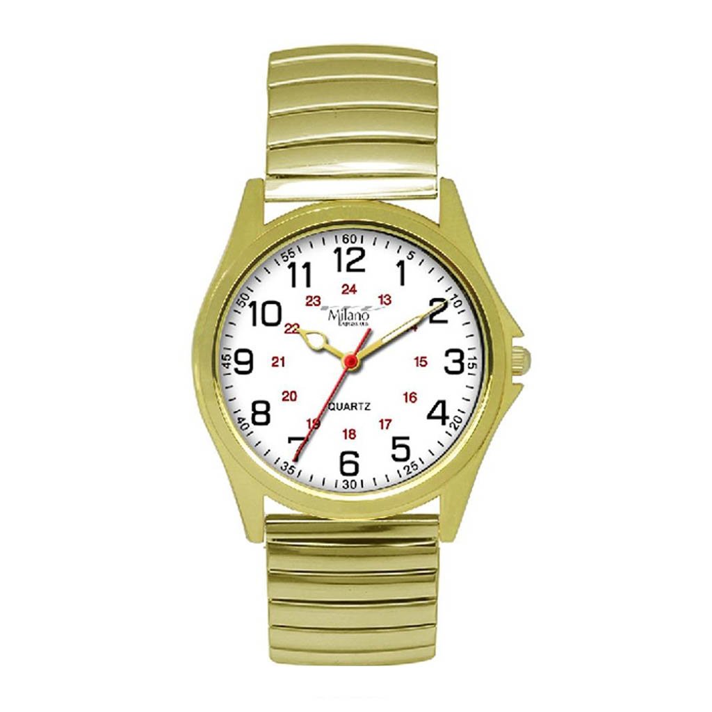 In summary, the Catonsville M Milano Expressions Gold Flex Strap Watch is a stylish and functional timepiece that combines elegance with durability. Its unique design, high-quality materials, and reliable movement make it a must-have accessory for anyone looking to elevate their style. Don't miss out on the opportunity to own this exquisite watch!
