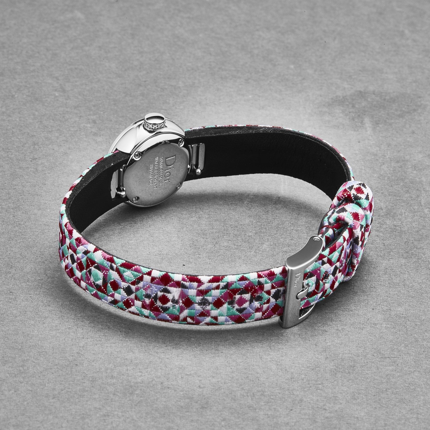 In summary, the Christian Dior Women's CD040110A026 'La D De Dior Mini' Pink Dial Diamond Bezel Multi Color Woven Strap Swiss Quartz Watch is a perfect blend of elegance, functionality, and luxury. Its unique features and exquisite design make it a must-have for any watch enthusiast or fashion lover.