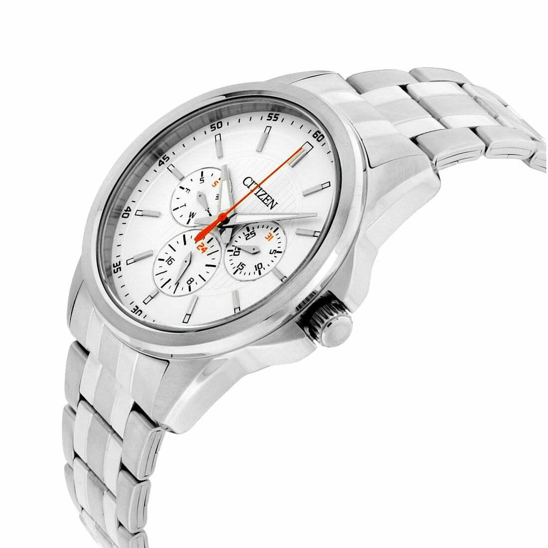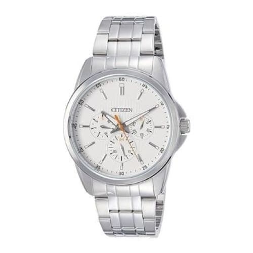 The Citizen AG8340-58A Silver Stainless Steel Beige Dial Men's Quartz Watch is a perfect blend of style and functionality. This exquisite timepiece features a robust 42mm stainless steel case that not only enhances its durability but also adds a touch of elegance to your wrist. The watch is designed with a fixed bezel and a sophisticated beige dial that makes it suitable for both casual and formal occasions.