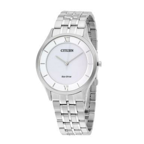 The Citizen AR0071-59A Stiletto Super Thin Stainless Steel White Dial Men's Eco-Drive Watch is a remarkable blend of style and functionality. This watch is designed for the modern man who appreciates elegance and practicality. With its ultra-thin profile and sophisticated design, it transitions seamlessly from formal occasions to casual outings, making it a versatile addition to any wardrobe.