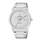 The watch is crafted from high-quality stainless steel, ensuring durability and resistance to wear and tear. The scratch-resistant mineral crystal protects the white textured dial, allowing for clear visibility of the analog display. The round dial shape is classic and timeless, making it suitable for both casual and formal occasions.
