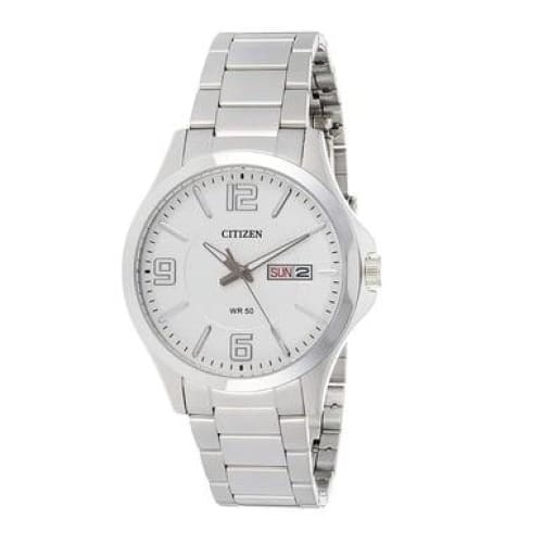 The Citizen BF2001-55A Silver Stainless Steel White Dial Men's Quartz Watch is a stunning example of timeless elegance and modern functionality. This watch is designed for those who appreciate classic aesthetics combined with reliable performance. The striking white dial is complemented by a robust stainless steel case and bracelet, making it suitable for both casual and formal occasions.