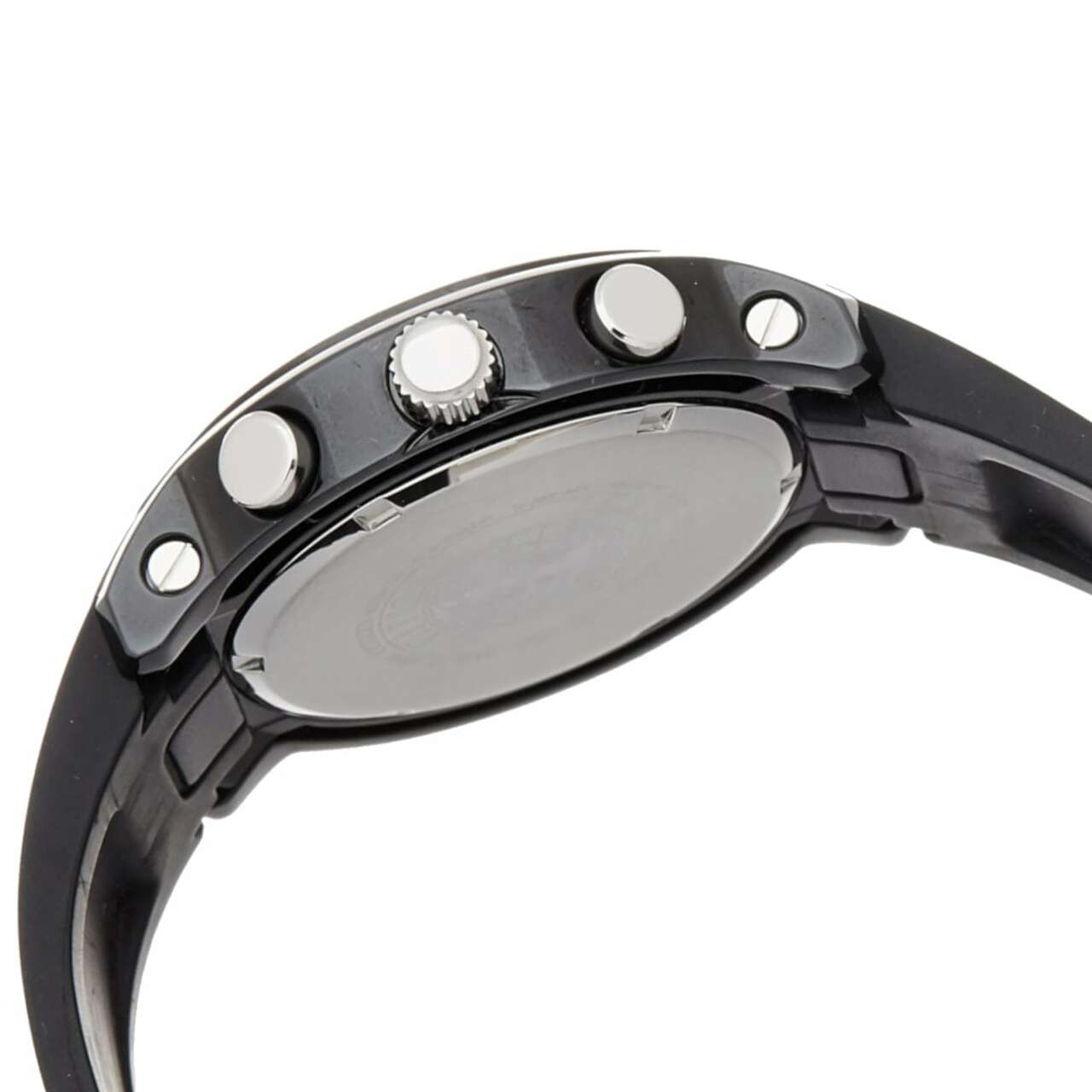 This watch features a round dial protected by scratch-resistant sapphire glass, ensuring that it remains clear and free from scratches over time. The case is made from high-quality stainless steel, providing durability and a polished look. The black polyurethane band is not only stylish but also comfortable, making it suitable for everyday wear. With a case diameter of 44 millimeters and a thickness of 12 millimeters, it strikes the perfect balance between boldness and wearability.