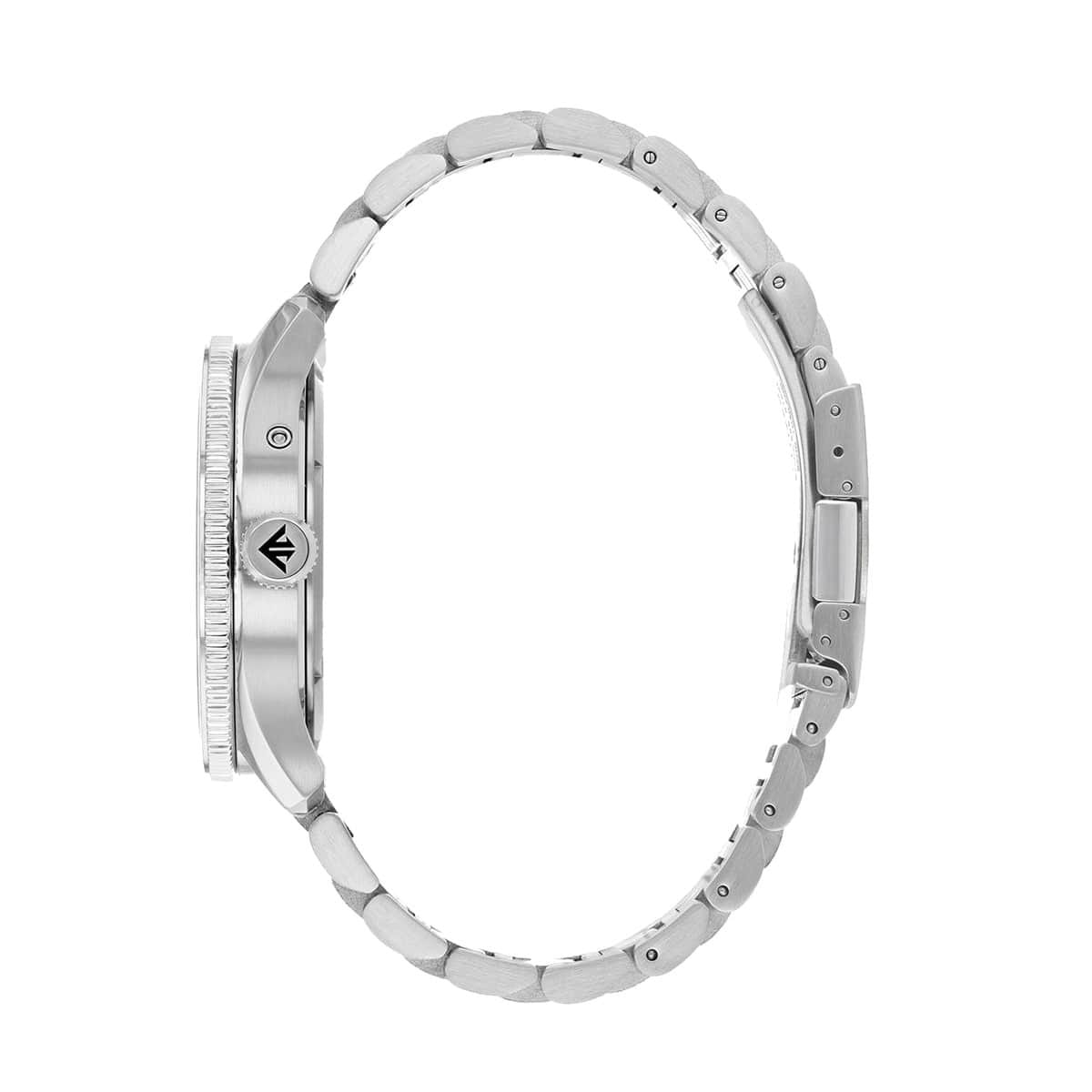 The watch is crafted from high-quality stainless steel, ensuring durability and longevity. The case diameter of 44 millimeters and a thickness of 12 millimeters provide a robust presence on the wrist. The stainless steel band, complemented by yellow contrast stitching, adds a touch of sophistication to the overall design. The black dial is not only visually appealing but also features a scratch-resistant mineral window, protecting it from everyday wear and tear.