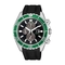 The watch features a robust stainless steel case that measures 46 millimeters in diameter and 10 millimeters in thickness, providing a sturdy yet stylish appearance. The black rubber strap is not only comfortable but also designed to withstand the rigors of diving. The emerald green bezel adds a touch of flair, while the black dial ensures that the watch remains easy to read in various lighting conditions.