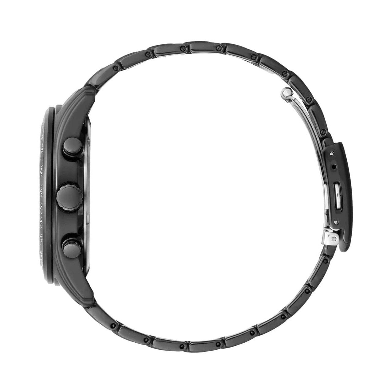 Constructed with a scratch-resistant sapphire crystal, the dial is protected from everyday wear and tear, ensuring that it remains clear and legible. The round dial shape adds a classic touch, while the black ion-plated bracelet complements the overall design. The deployment clasp ensures a secure fit on your wrist, making it comfortable for all-day wear.