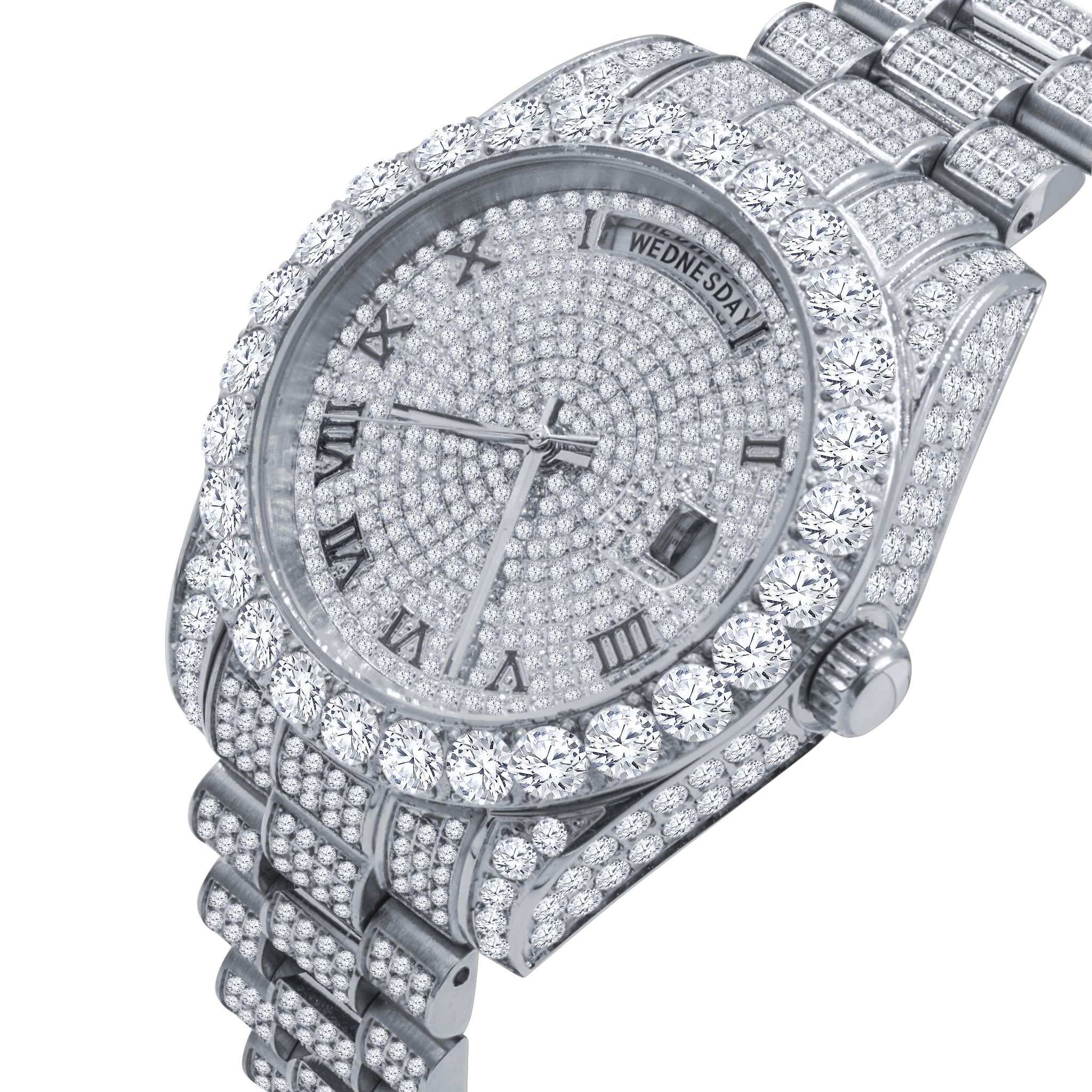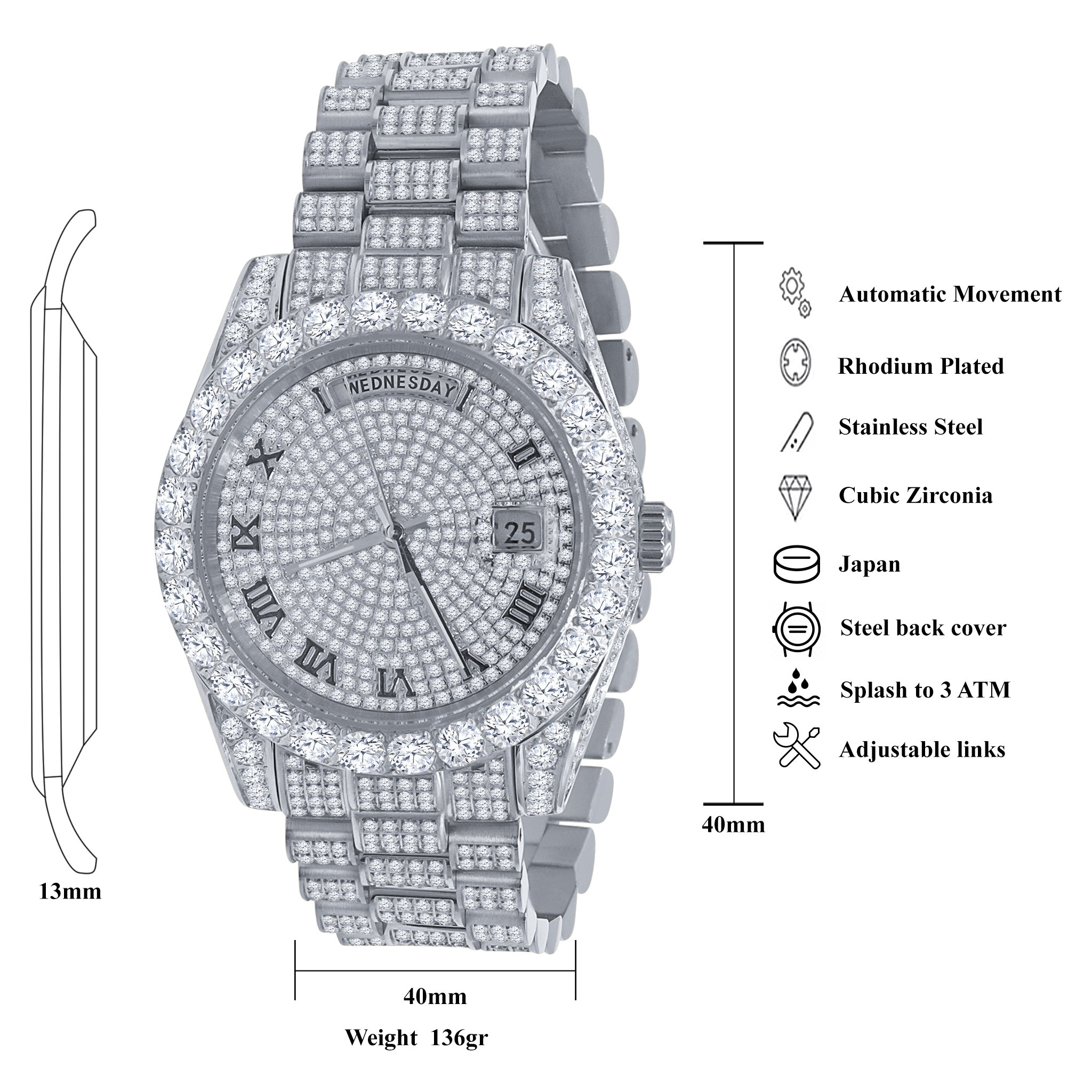 Crafted with precision, the CROWN Steel Watch features a robust stainless steel body that ensures durability and longevity. The watch is adorned with Grade AAA stones, which are meticulously set to create a dazzling effect that captures light beautifully. The unblemished cubic zirconia stones add an extra layer of brilliance, making this watch a true masterpiece.