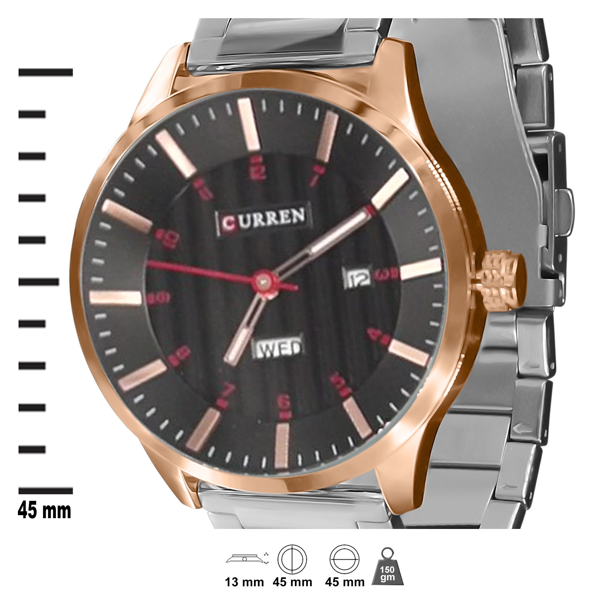 The CURREN Metal Band Watch-550733 is a stunning timepiece that combines elegance with functionality. This watch is designed for those who appreciate classic aesthetics and reliable performance. With its Japan Seiko Movement, you can trust that this watch will keep accurate time, making it a perfect accessory for both casual and formal occasions.
