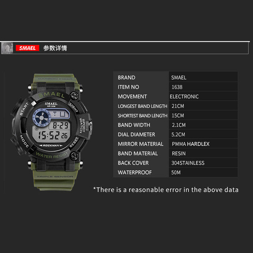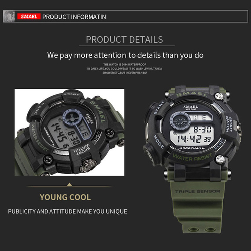 • Feature: Shock Resistant,Stop Watch,LED display,Auto Date,Week Display,Water Resistant,Diver,Back Light,Chronograph,Alarm,Luminous,Repeater