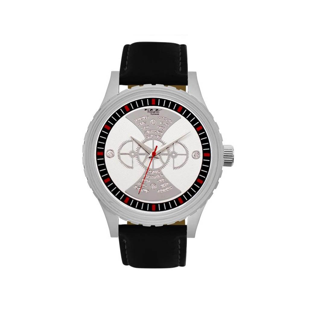 The Dixon Black Vegan Leather Band Watch is a stunning timepiece from M Milano Expressions, designed for those who appreciate style and sustainability. This watch features a sleek black vegan leather band that not only looks great but is also environmentally friendly. The silver case and silver dial are complemented by striking red accents, making it a fashionable choice for any outfit.