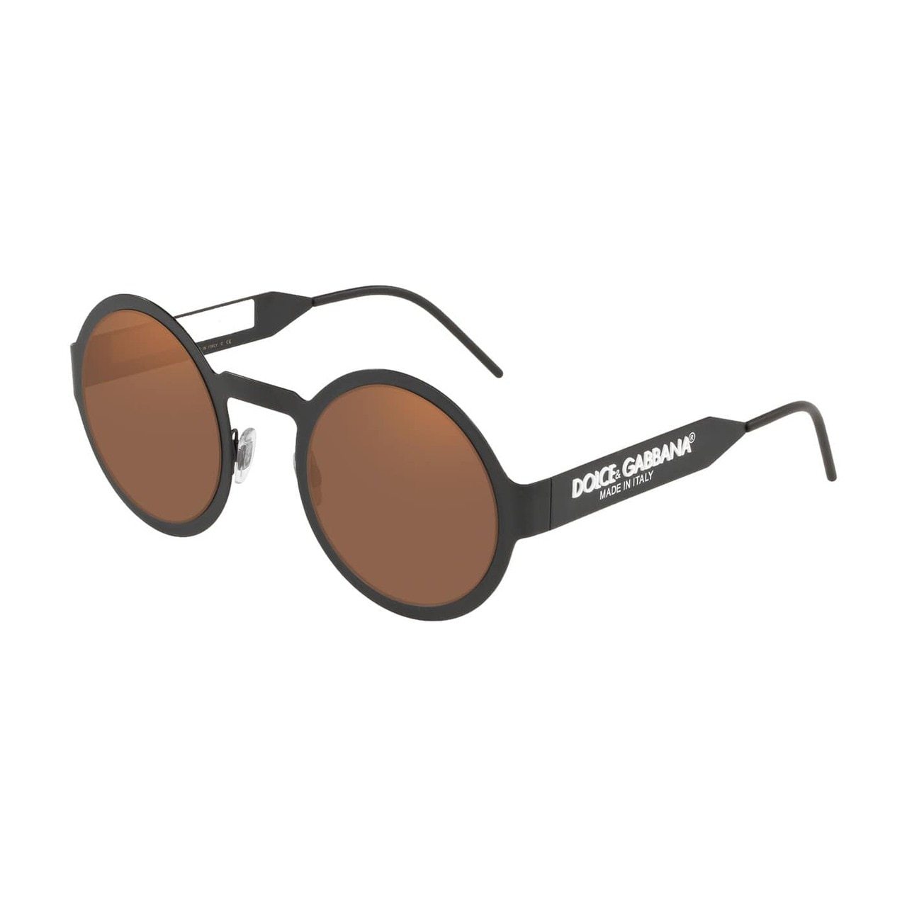 The Dolce & Gabbana DG2234-1106/O Matte Black Round Brown Metallic Orange Lens Metal Sunglasses are a stunning addition to any fashion-forward woman's accessory collection. These sunglasses not only provide protection from harmful UV rays but also elevate your style quotient. Crafted with precision, these sunglasses are designed to complement various face shapes, particularly squared and heart-shaped faces, making them a versatile choice for any occasion.