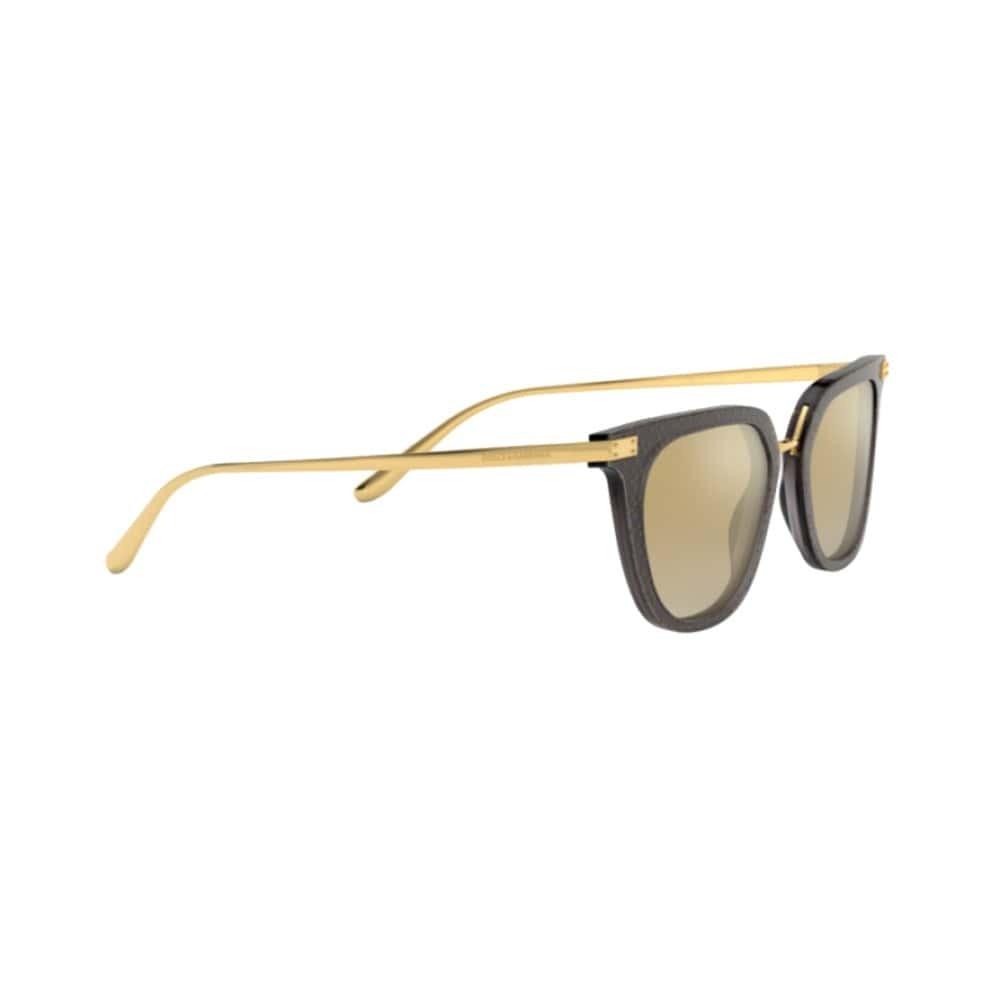 The Dolce & Gabbana DG4363-32106E sunglasses are a stunning addition to any fashion-forward woman's eyewear collection. These sunglasses are not just a practical accessory; they are a statement piece that reflects the latest trends in contemporary designer eyewear. With their unique transparent black gold frame and light brown gradient mirrored lenses, these sunglasses are designed to elevate your style while providing optimal sun protection.