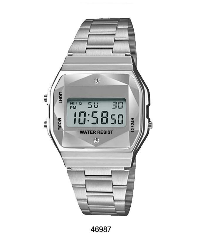 Eureka Silver Sports Metal Band Watch featuring a silver metal case and crystal cut LCD display, showcasing its elegant design.