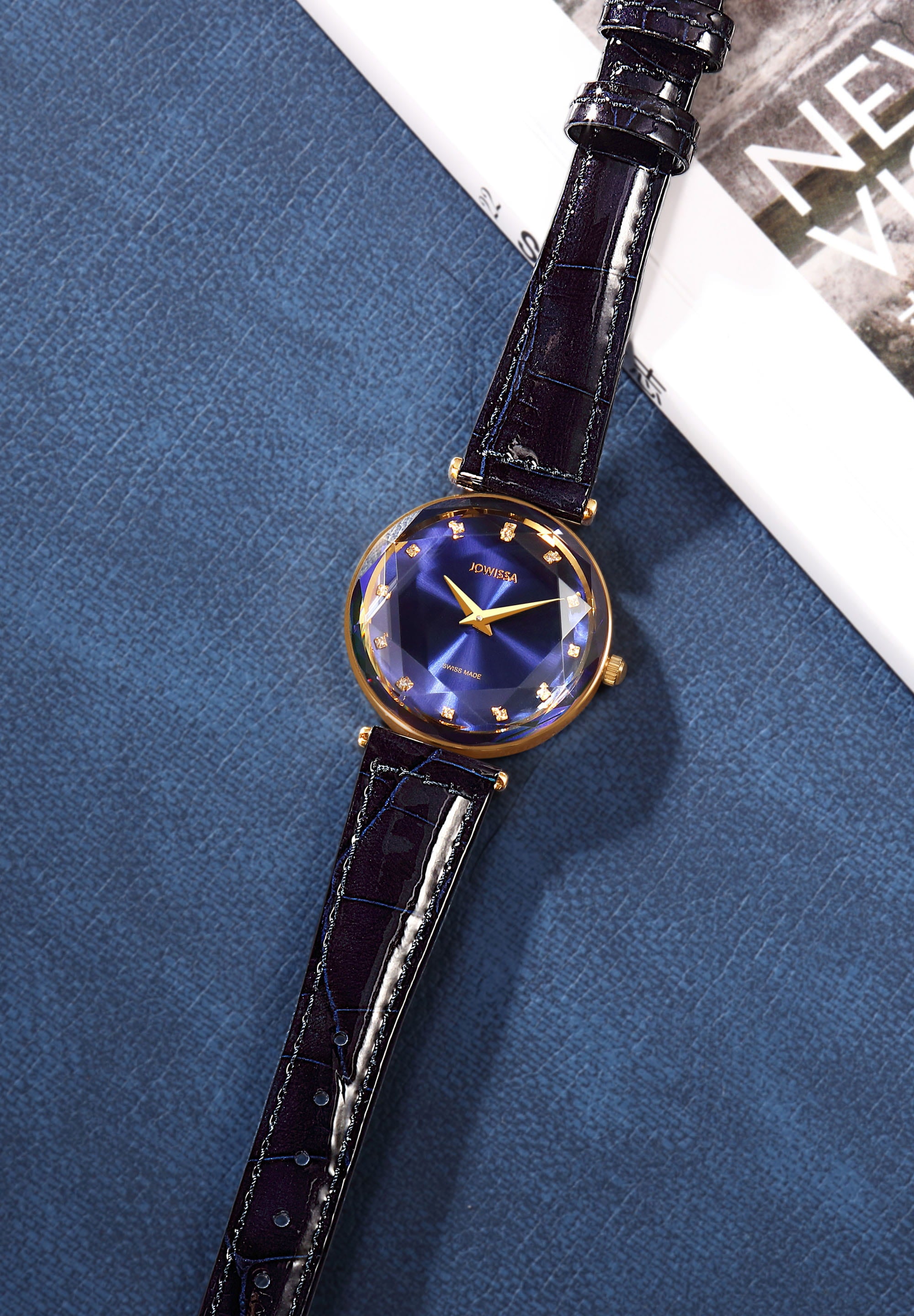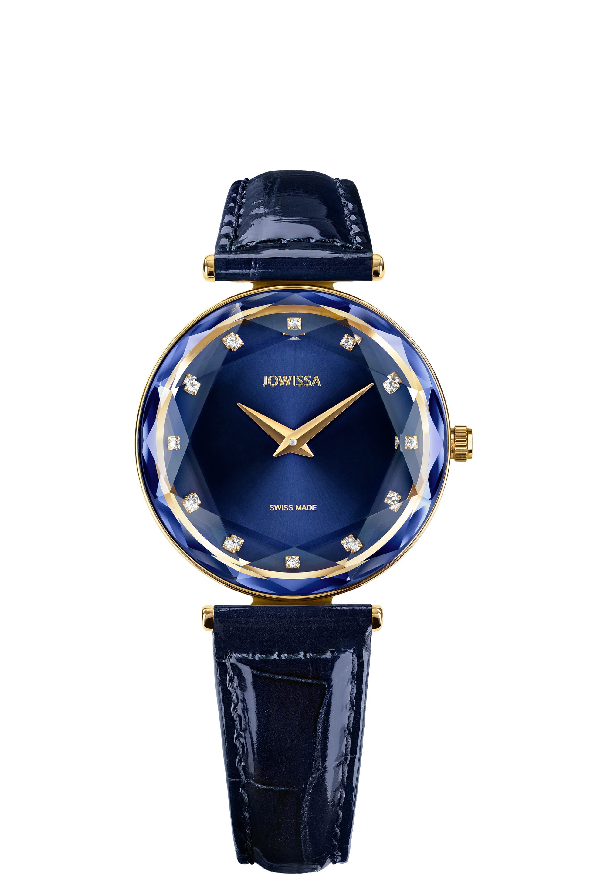 The Facet Brilliant Swiss Ladies Watch J5.752.M is a stunning timepiece that combines elegance and functionality. Designed for the modern woman, this watch features a rich royal blue dial that captures attention and exudes sophistication. The polished gold-tone details on the watch face enhance its luxurious appeal, making it a perfect accessory for any occasion.