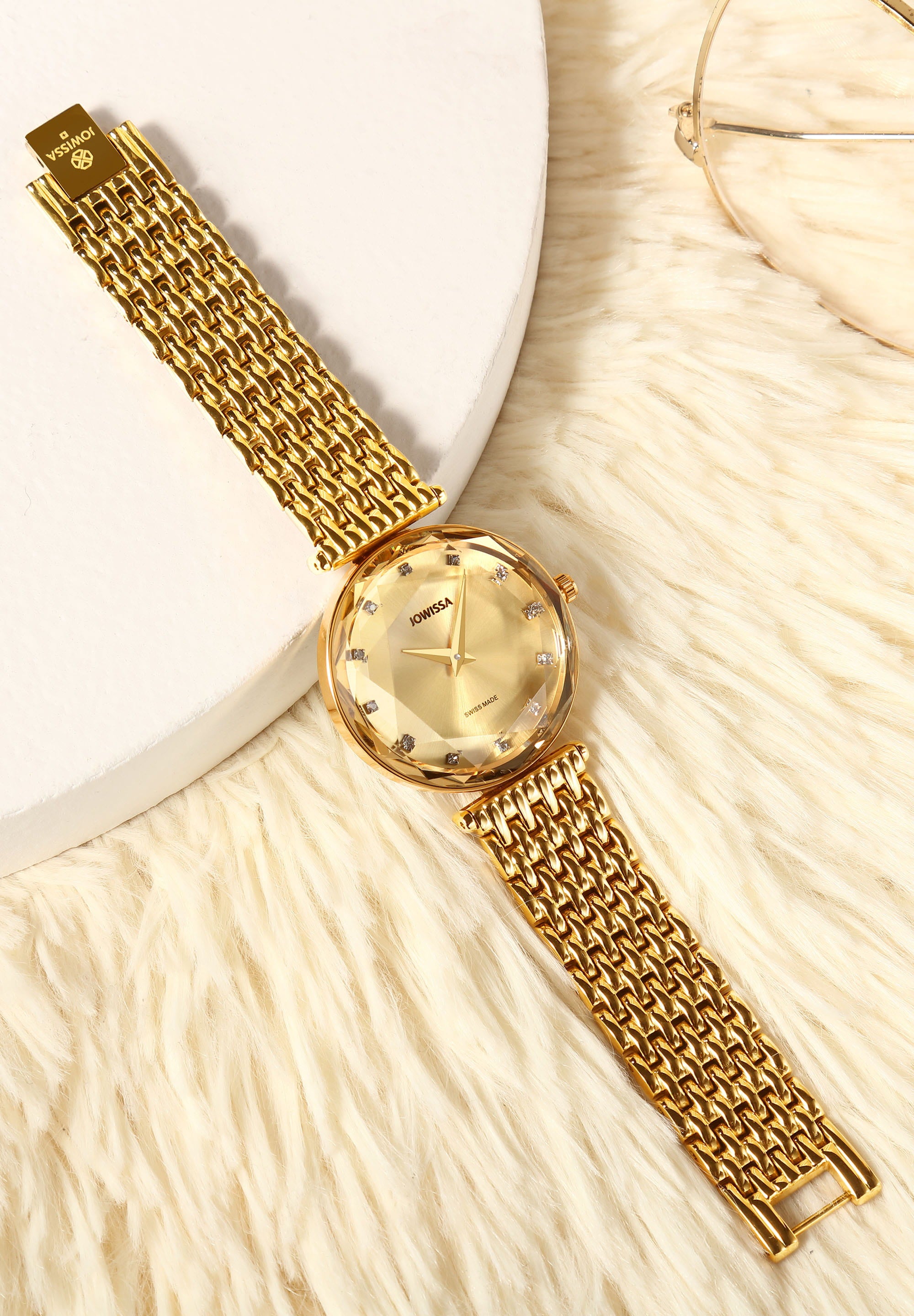 The Facet Brilliant Swiss Ladies Watch J5.841.M is a stunning timepiece that combines elegance and functionality. Crafted with precision in Switzerland, this watch is designed for the modern woman who appreciates luxury without compromising on quality. The watch features a luxurious champagne gold finish that radiates sophistication and style, making it the perfect accessory for any occasion.
