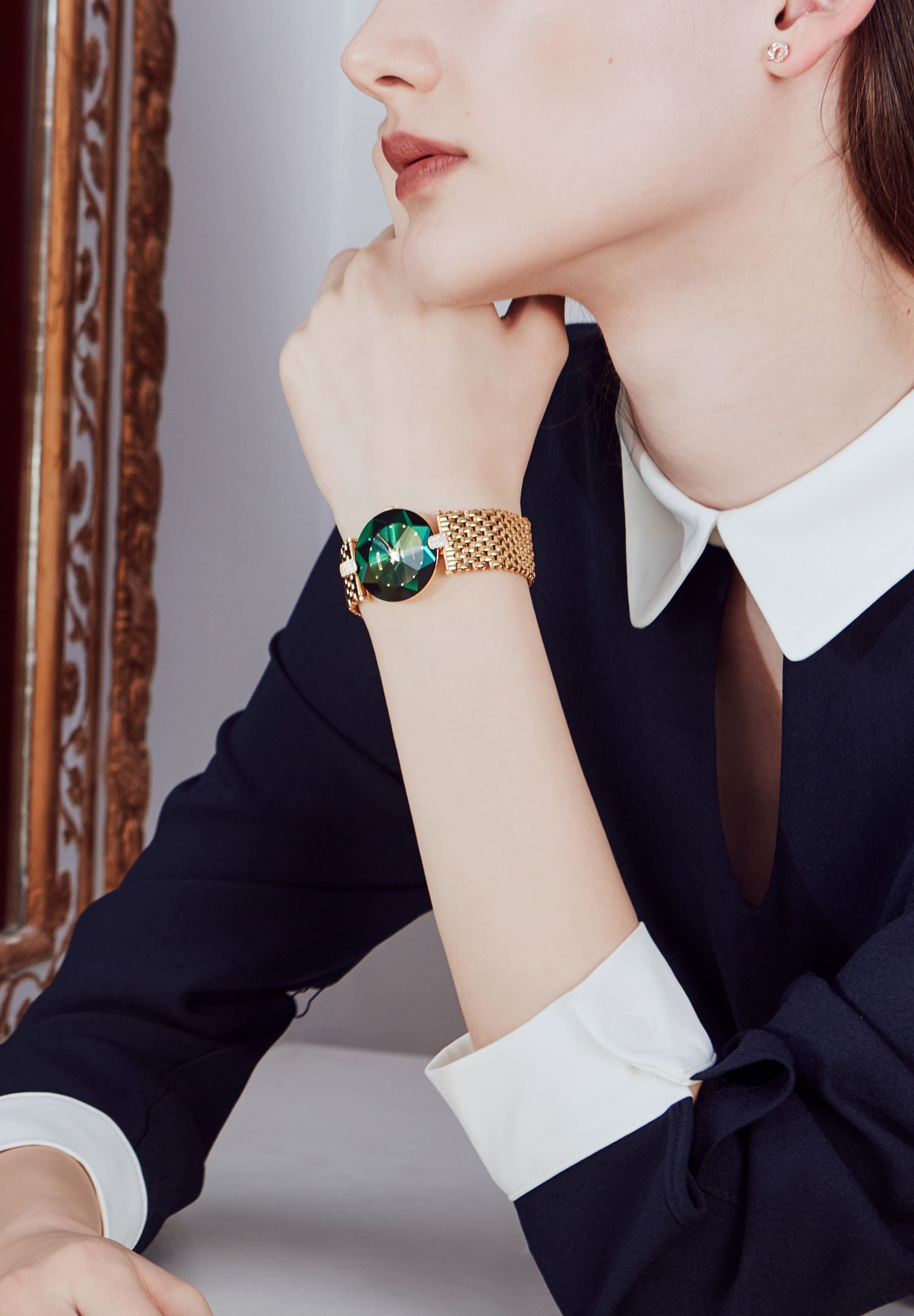 The Facet Strass Swiss Ladies Watch J5.462.M is available in a stunning gold and green color combination, making it a fashionable choice for any occasion. Whether you're dressing up for a special event or looking for a chic everyday accessory, this watch is sure to impress.
