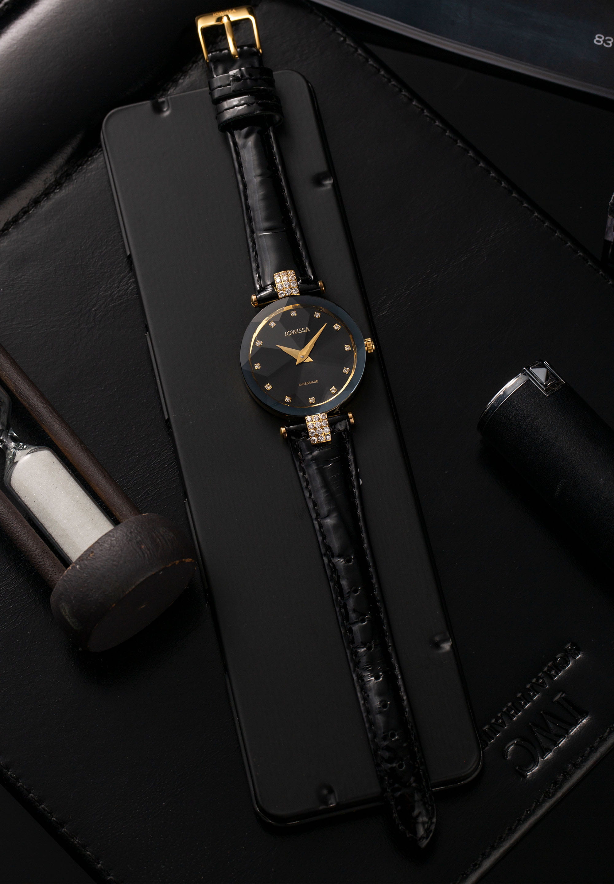 Introducing the Facet Strass Swiss Ladies Watch J5.614.M, a perfect blend of luxury and functionality. This exquisite timepiece is designed for the modern woman who appreciates elegance and reliability. With its stunning midnight black sunray dial and sparkling Strass stones, this watch is not just a timekeeper but a statement piece that enhances any outfit.