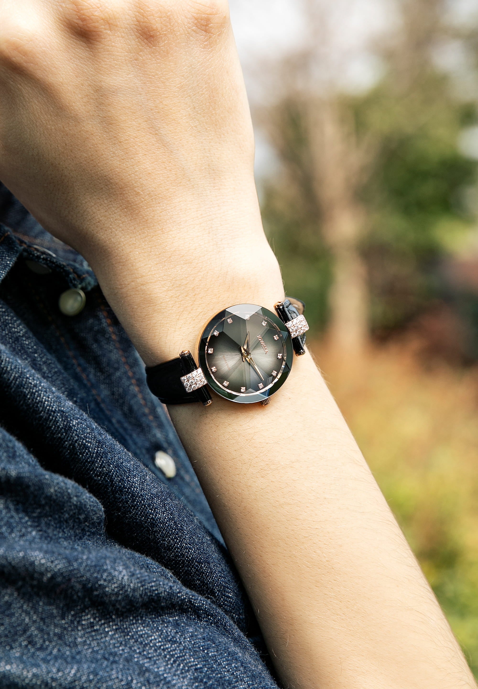 The Facet Strass watch is designed with a stainless steel case that is not only durable but also features pavé set rhinestones, adding a luxurious touch. With a case diameter of 29.5 mm and a height of 9 mm, it is perfectly sized for a feminine wrist. The stainless steel back cover allows for easy battery replacement, ensuring that your watch remains functional for years to come.