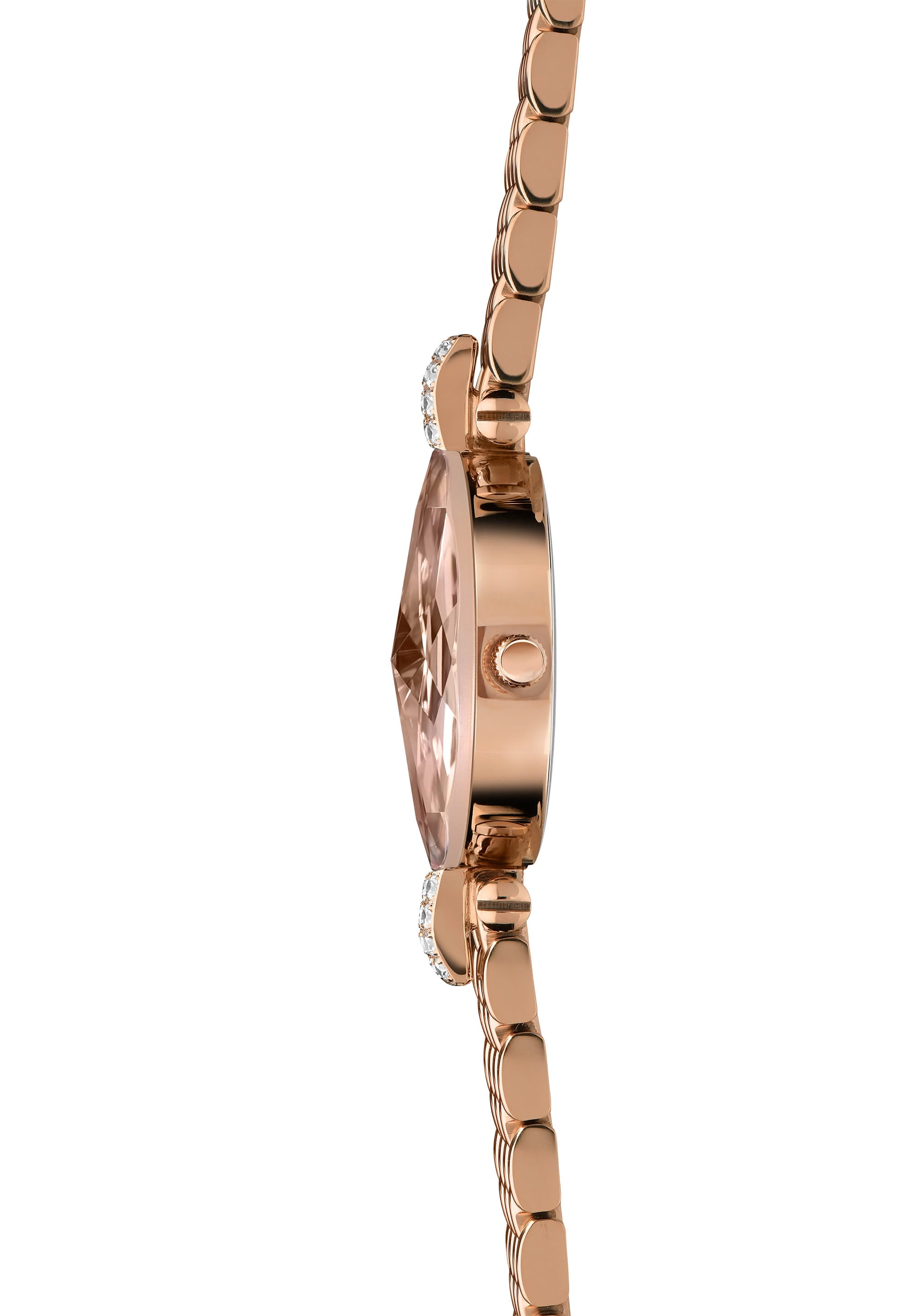 The watch case is made from high-quality stainless steel and features a pavé set of rhinestones that enhance its luxurious appeal. With a case height of just 8mm, it sits comfortably on the wrist, making it suitable for everyday wear. The tempered mineral glass is diamond-cut over the entire surface, providing durability and scratch resistance.
