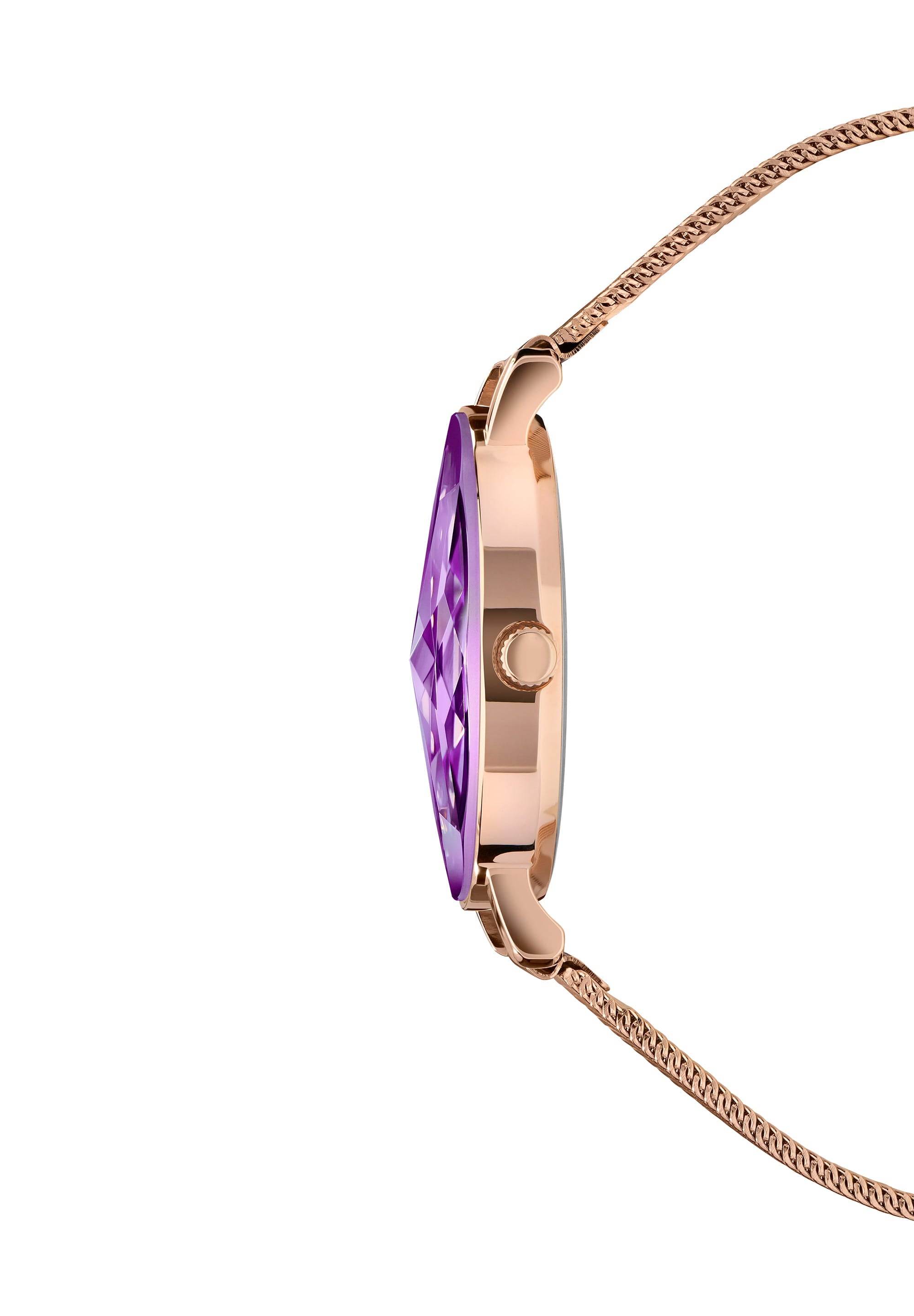 In summary, the Facet Swiss Ladies Watch J5.612.M is a luxurious and stylish accessory that combines quality Swiss craftsmanship with elegant design. With its stunning purple sunray dial, rose-gold accents, and reliable movement, this watch is perfect for any woman who wants to elevate her style.