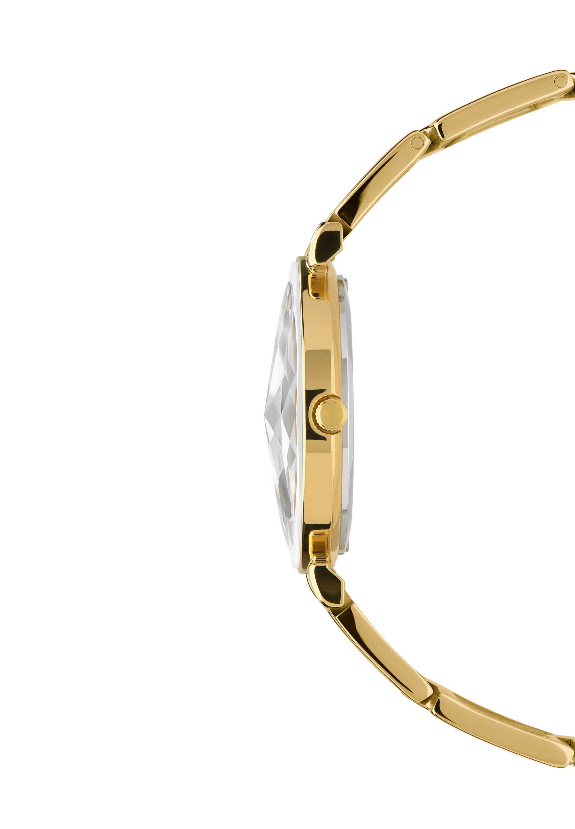 The luxurious gold stainless steel ladder bracelet is designed for comfort and style. With a band width of 18 mm and an adjustable range for wrist circumferences of 165 - 205 mm, this watch can be tailored to fit perfectly on your wrist. The stainless steel buckle features a laser-engraved logo, adding a touch of sophistication to the overall design.