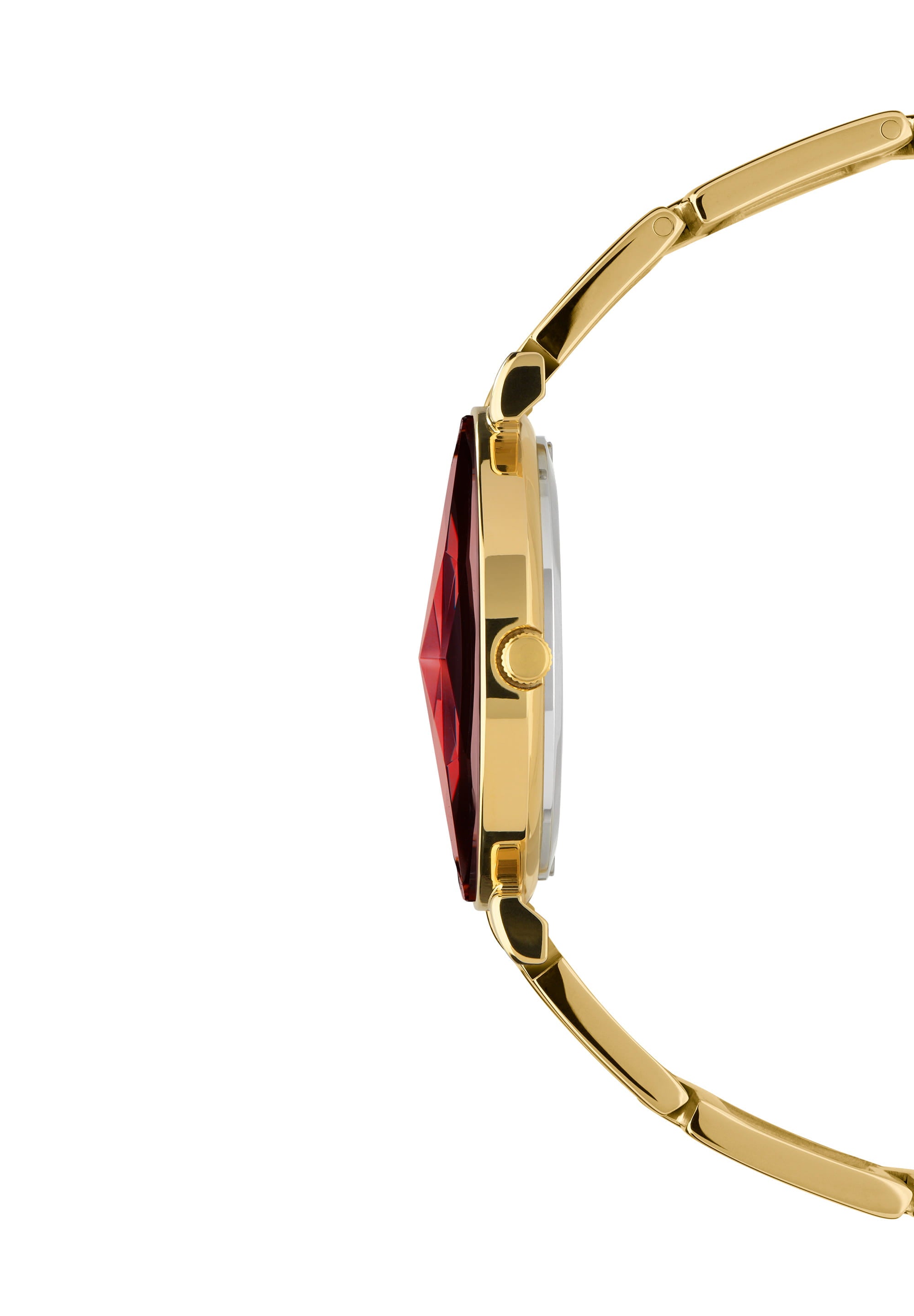 The shiny sunray dial is complemented by point hour indices, providing a clear and elegant way to tell time. The watch case is gloss polished with gold plating, adding a touch of luxury to its overall appearance. The diamond-cut tempered mineral glass enhances the watch's durability while providing a clear view of the dial.