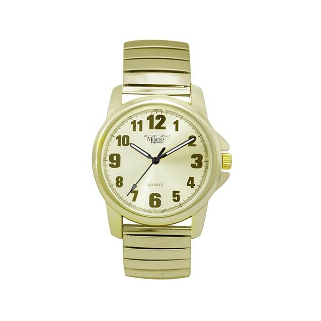 The Frederick M Milano Expressions Gold Flex Band Watch is a stunning timepiece that combines elegance and functionality. Featuring a beautiful champagne dial, this watch is designed to make a statement on any wrist. Whether you're dressing up for a special occasion or looking for a stylish accessory for everyday wear, this watch is the perfect choice.