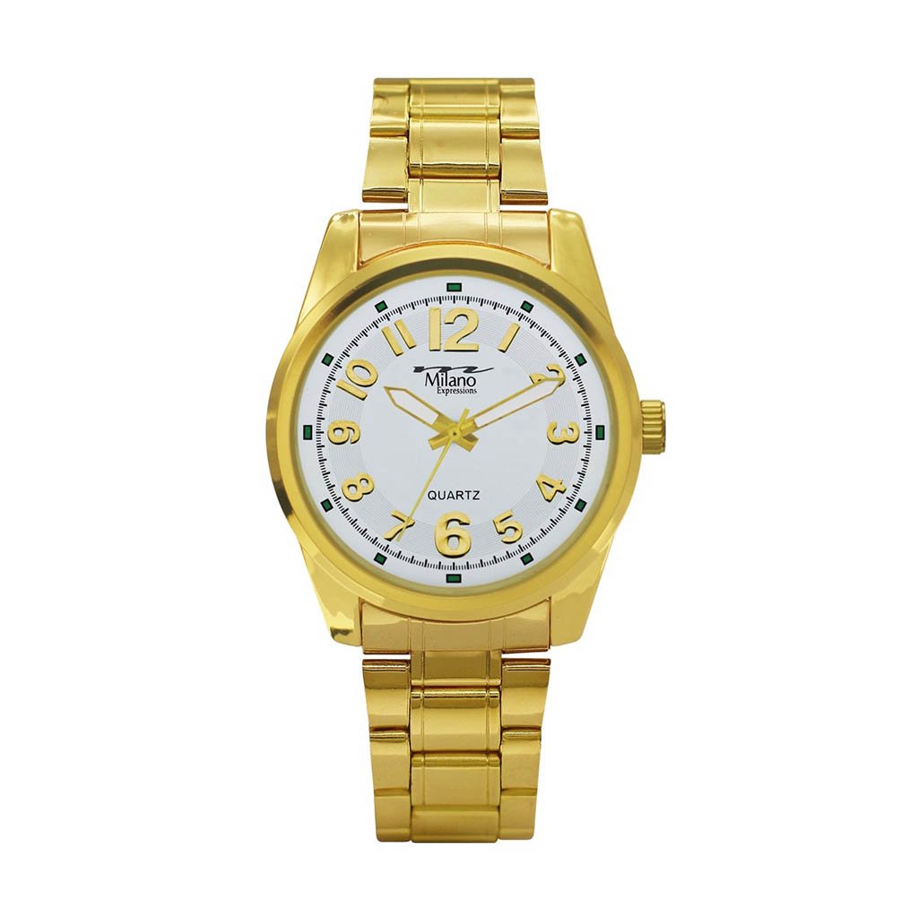 The Fredonia Gold Metal Band Watch by M Milano Expressions is a perfect blend of style and functionality. This exquisite timepiece features a stunning gold metal band that adds a touch of elegance to any outfit. The watch is designed with a classic white dial that enhances its sophisticated look, making it suitable for both casual and formal occasions.