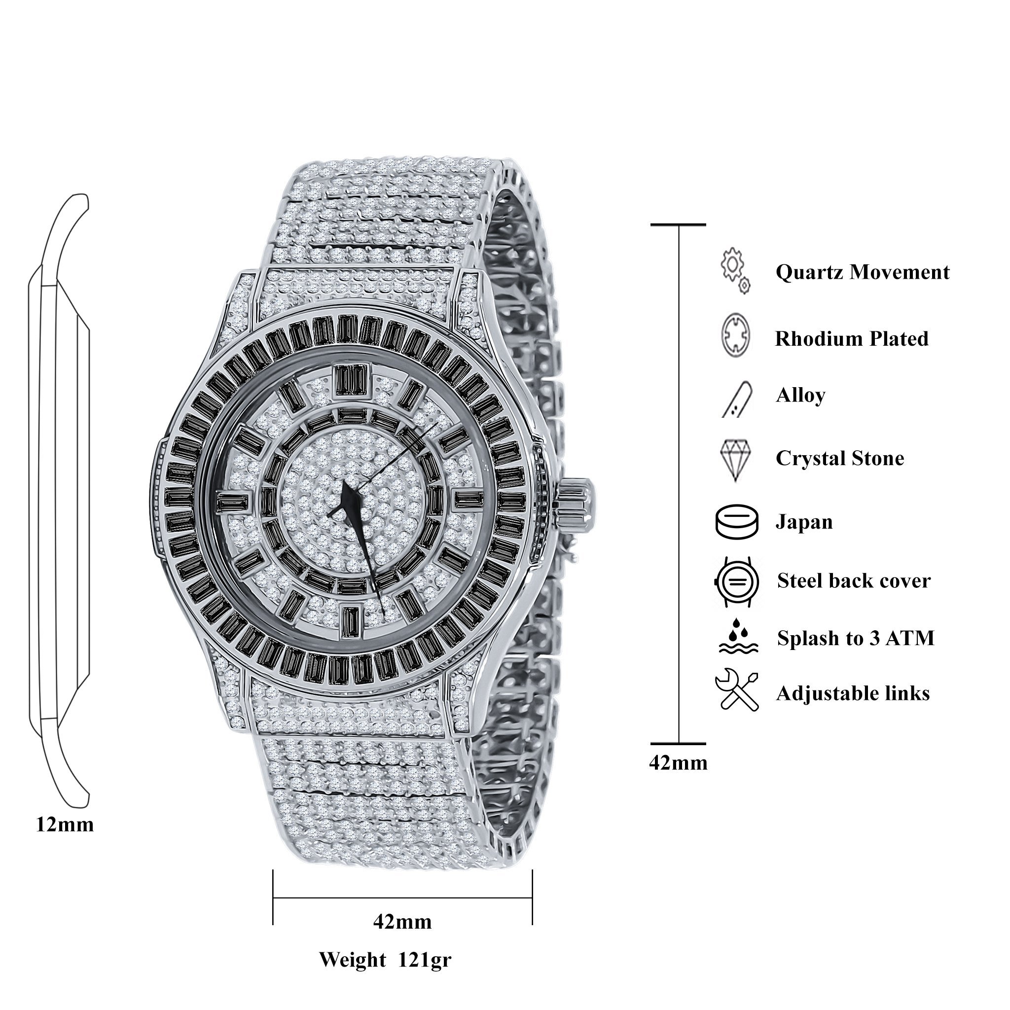Measuring 42 MM in diameter and 12 MM in band width, the GALLANT CZ Watch is designed to fit comfortably on your wrist while making a bold statement. Weighing only 121 grams, it is lightweight yet sturdy, making it perfect for everyday wear or special occasions. The watch is also equipped with a Miyota Citizen date movement, ensuring accurate timekeeping.