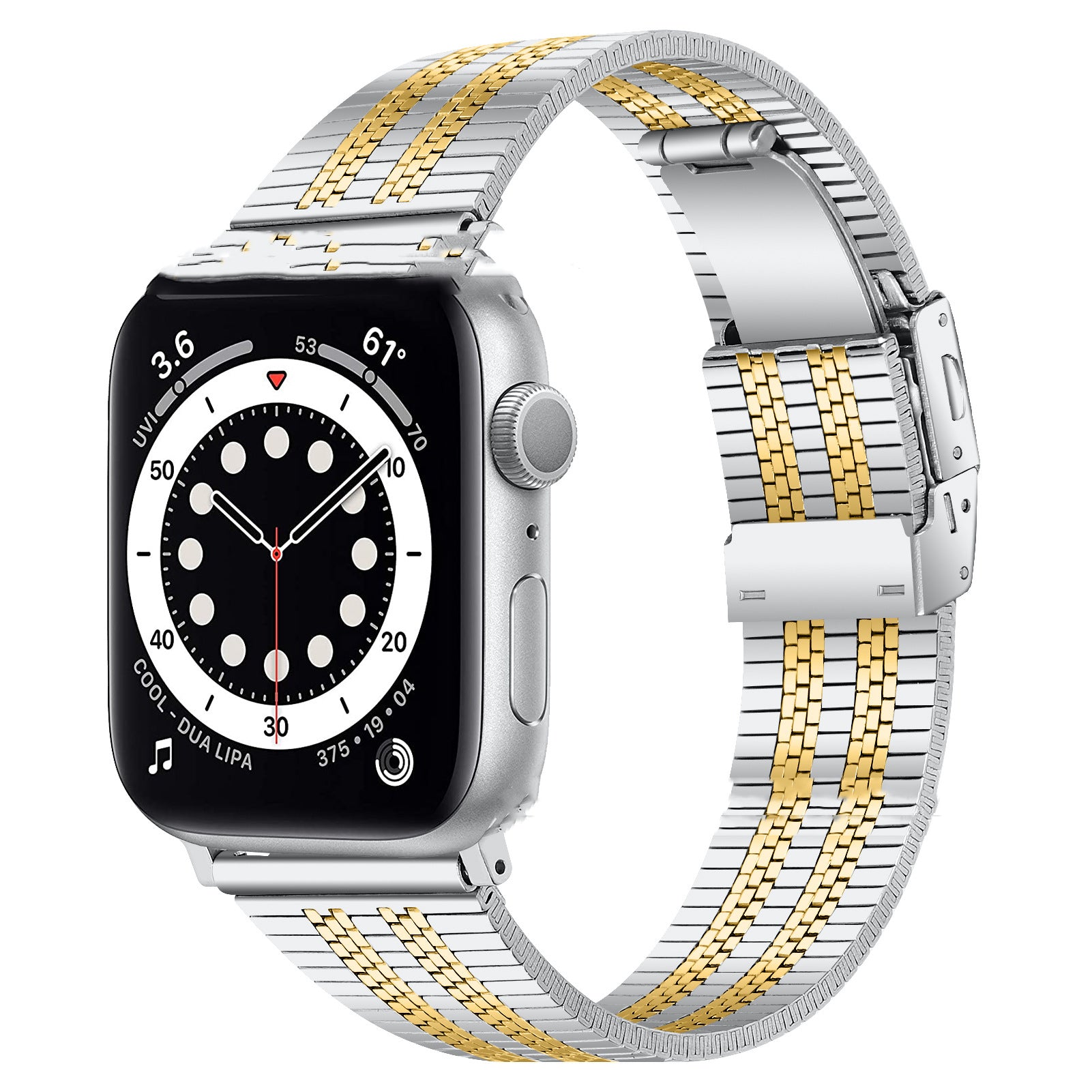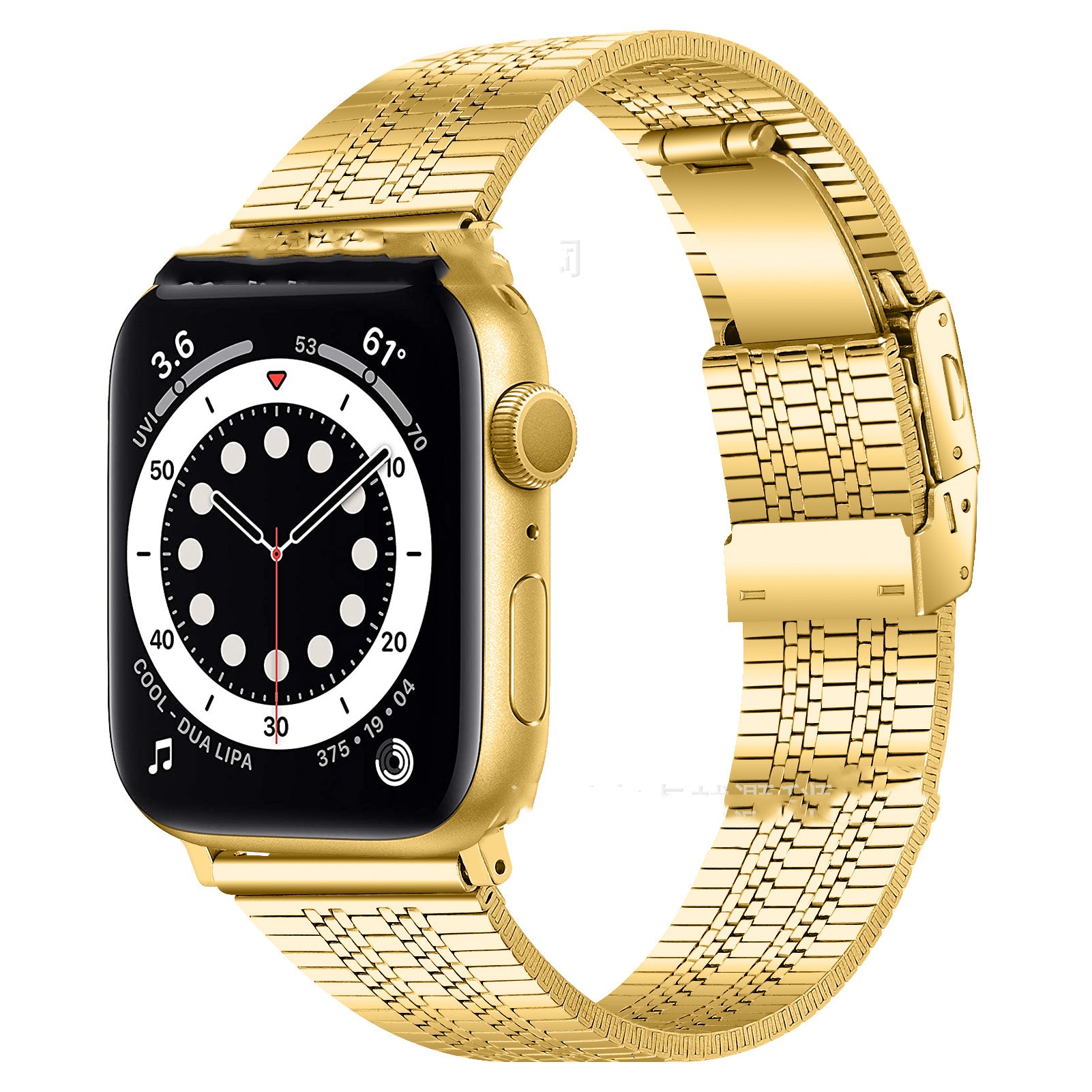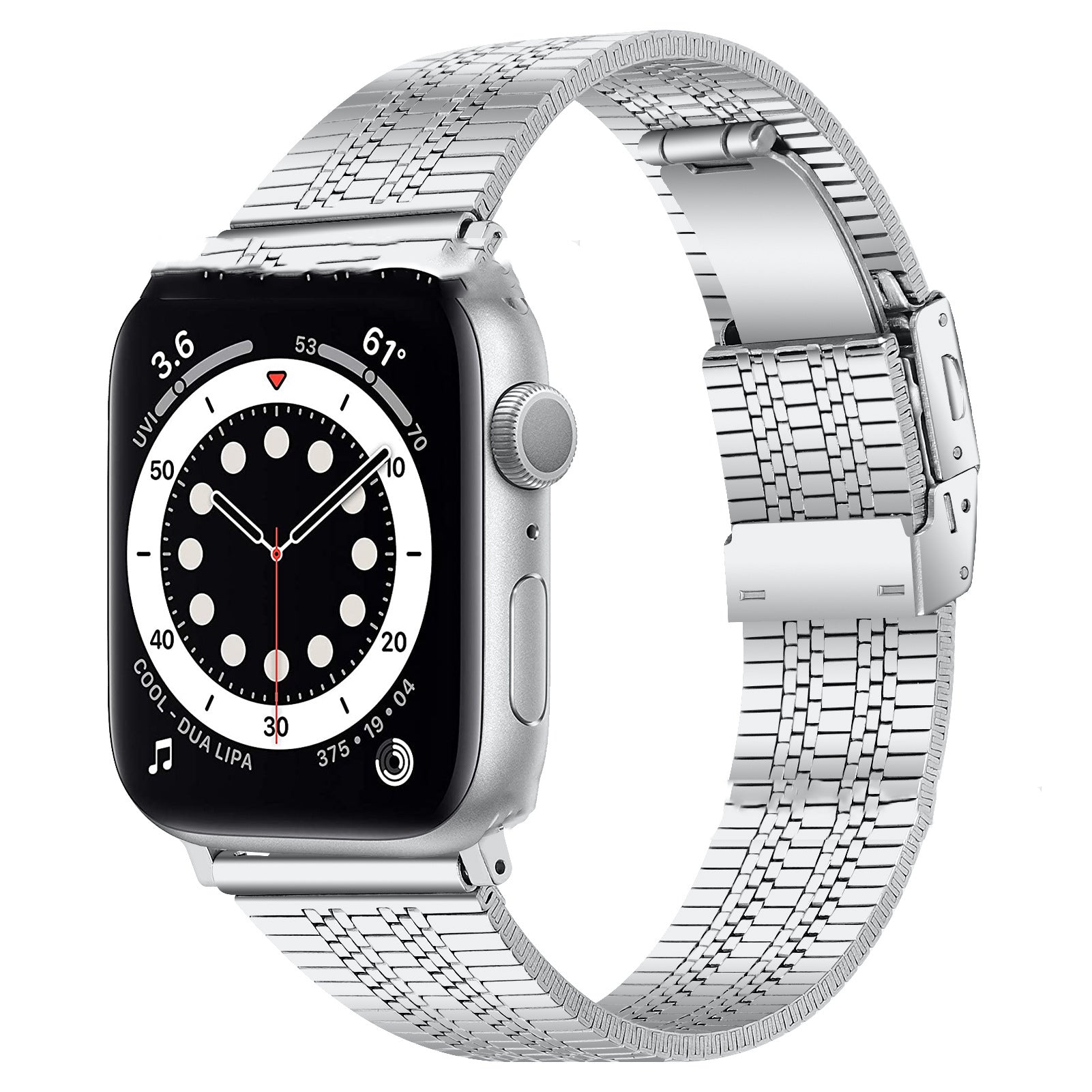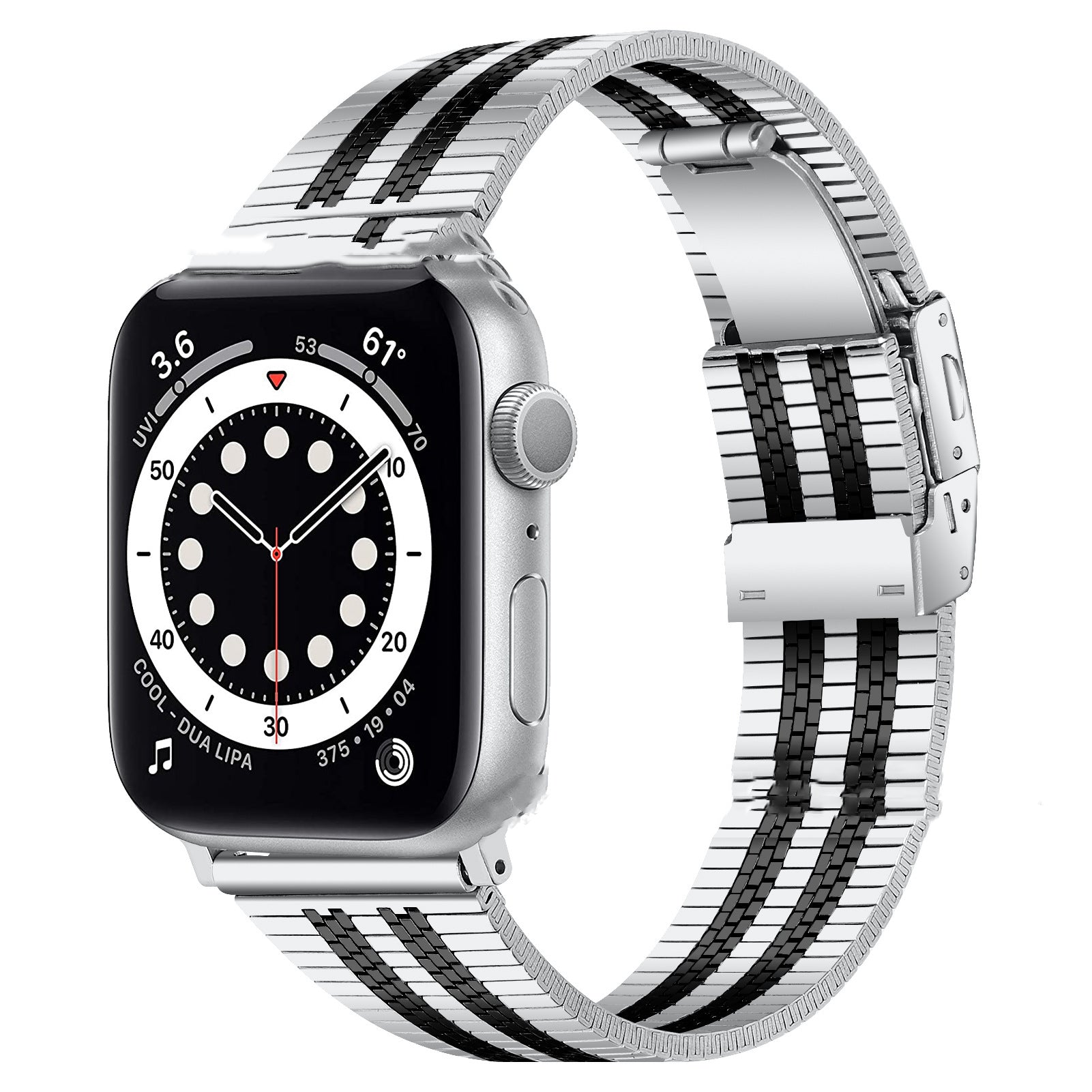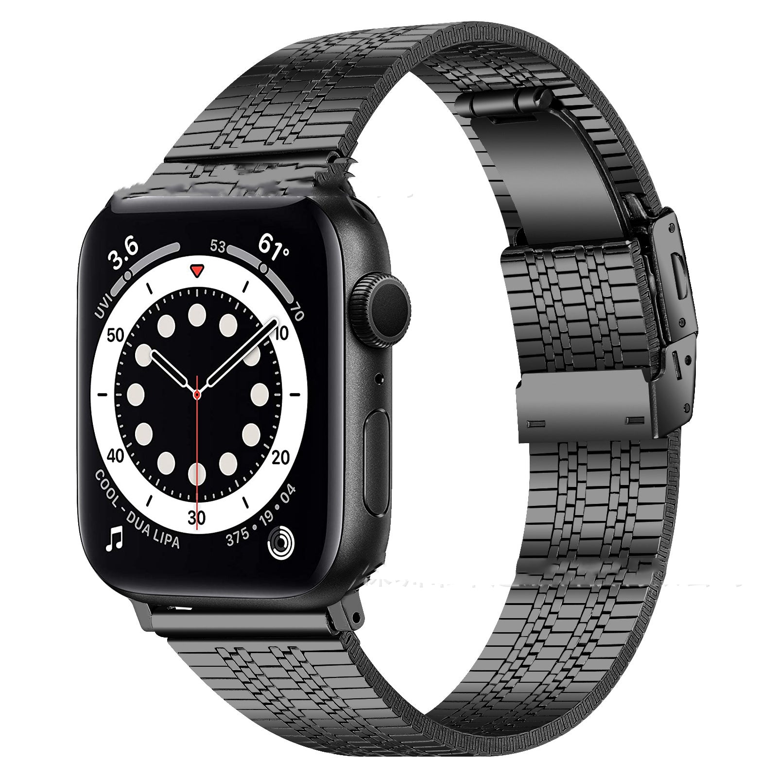 High-grade stainless steel five-bead back buckle watch belt for Apple Watch, showcasing its elegant design and durable material.