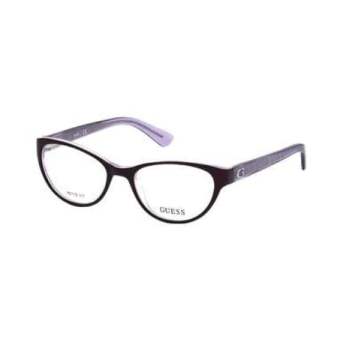 Crafted from premium acetate, the frame of the Guess GU-2592-081 eyeglasses is not only lightweight but also durable. Acetate is known for its flexibility and comfort, ensuring that you can wear these glasses for extended periods without discomfort. The shiny violet finish adds a unique flair, making these eyeglasses stand out in any crowd.