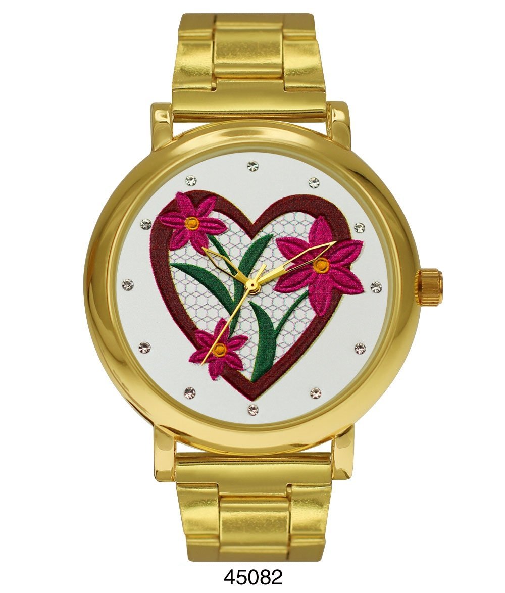 The Hallandale Beach watch by M Milano Expressions is a stunning accessory that combines elegance and functionality. Featuring a beautiful gold metal band and a unique heart/flower dial, this watch is designed to make a statement. Whether you're dressing up for a special occasion or looking for a stylish everyday accessory, this watch is the perfect choice.