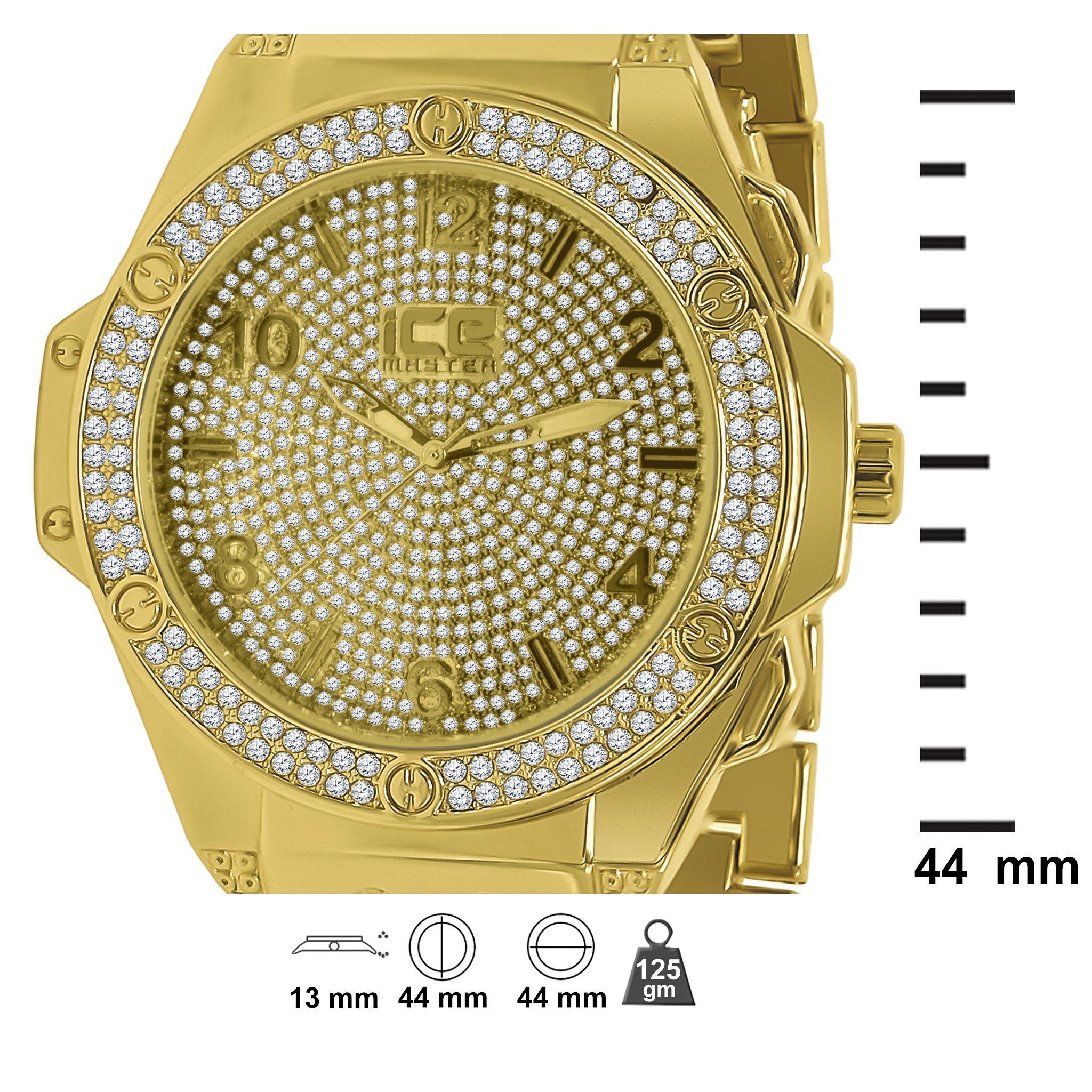 The HUB Ice Master Watch features a 100% adjustable bracelet with individually poly bag wrapped links, allowing you to customize the fit to your wrist size. The double push pin buckle ensures that the watch stays securely in place, providing comfort throughout the day. With a 45 MM diameter and a 12 MM thick case, this watch strikes the perfect balance between boldness and wearability.