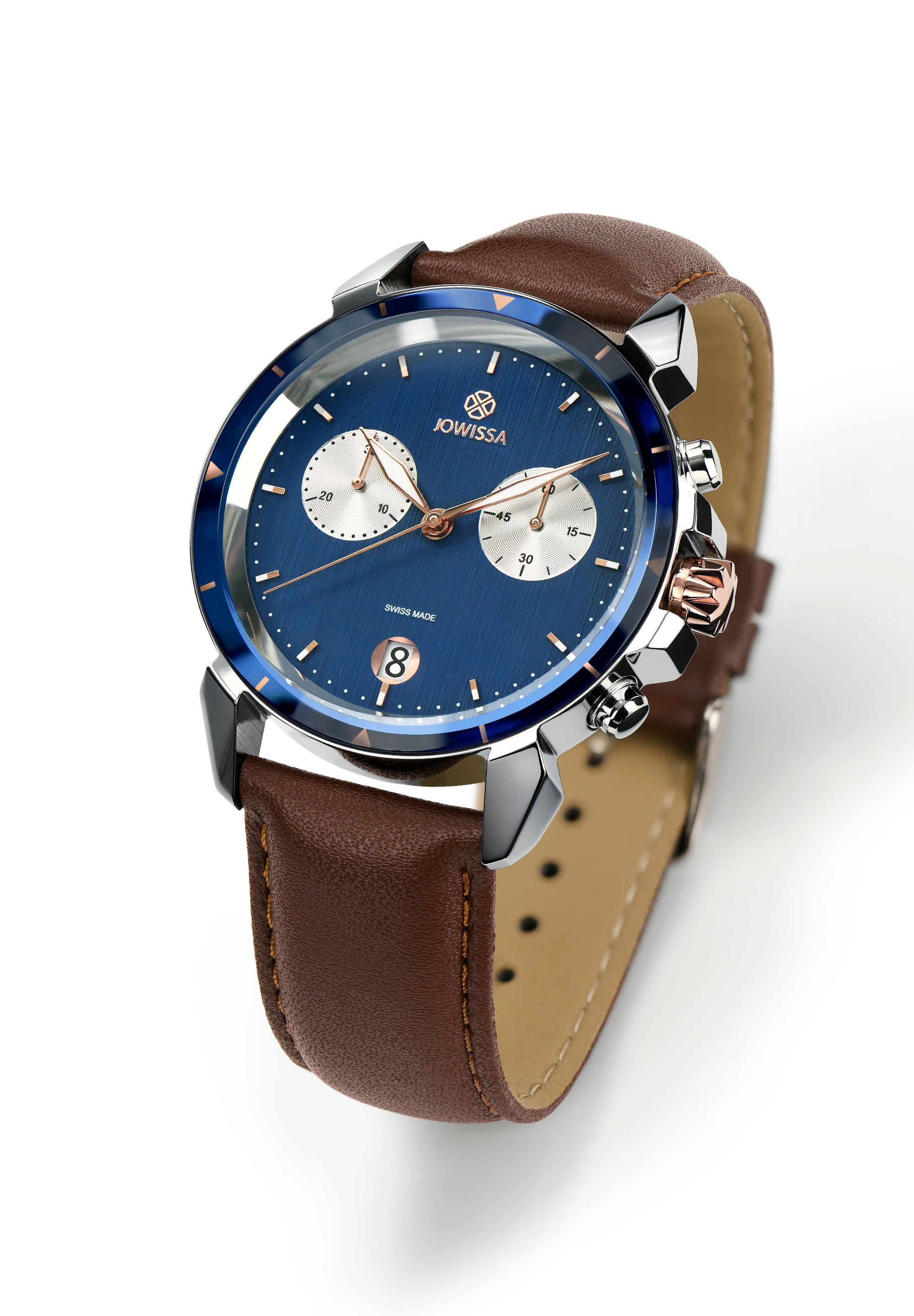 The LeWy 6 Swiss Men's Watch J7.018.L is the perfect blend of style and functionality, designed for the modern man who appreciates precision and elegance. This handsome Swiss chronograph features a striking sapphire blue dial that is beautifully complemented by silver sub-dials, allowing for precise time measurement and date display. The watch is not just a timepiece; it is a statement accessory that enhances any outfit.