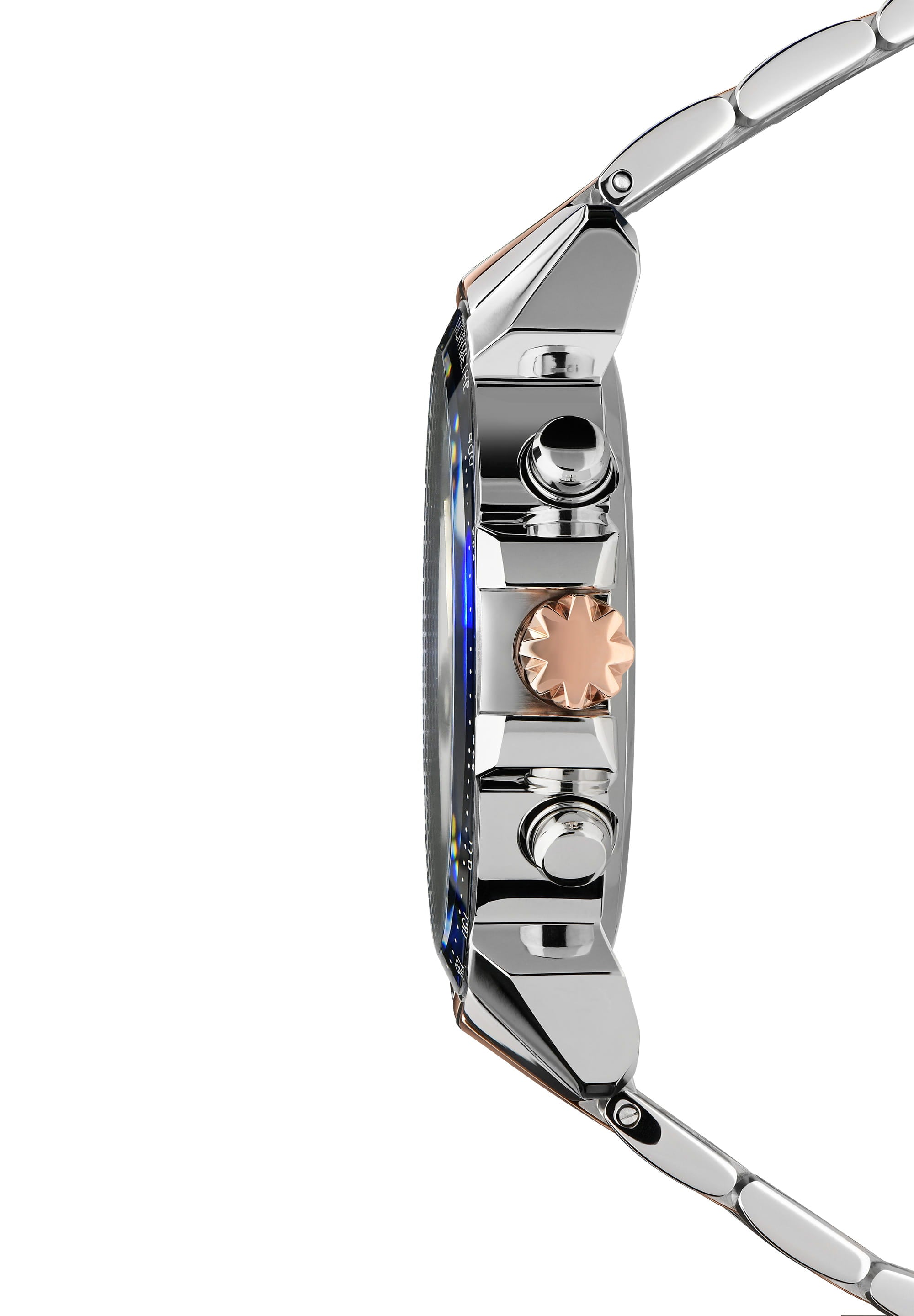 Crafted from high-quality stainless steel, the LeWy 9 features a gloss-polished case surface that enhances its aesthetic appeal. The scratch-resistant sapphire crystal with a polished edge protects the dial from everyday wear and tear. The integrated metallized bezel with a tachymeter adds functionality while maintaining a sleek look.
