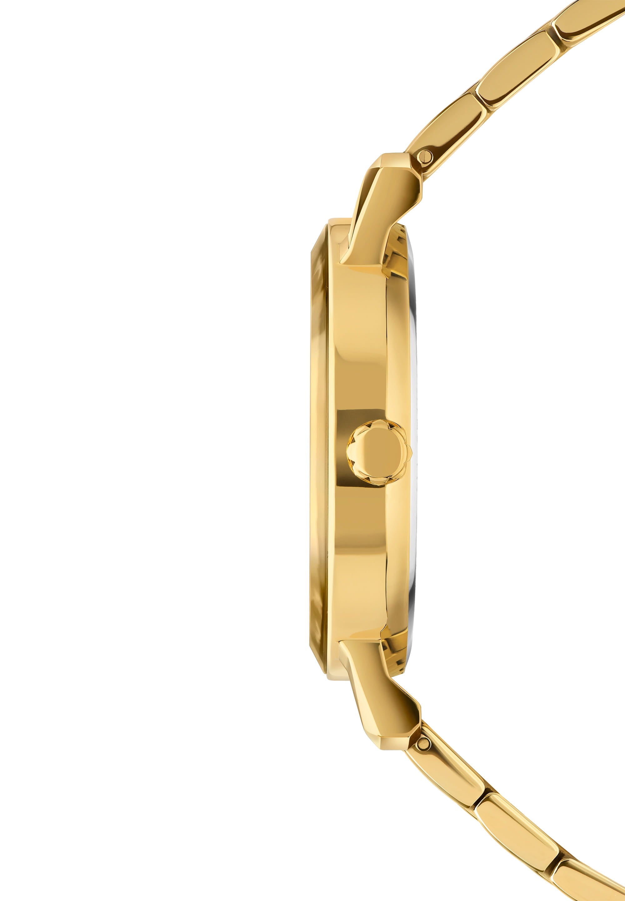 With a case diameter of 40mm and a height of just 8mm, this watch is designed to sit comfortably on the wrist. The stainless steel case is gloss polished and plated in gold, ensuring durability while maintaining a luxurious look. The watch is powered by a reliable Ronda Swiss quartz movement, providing accurate timekeeping with hours, minutes, and seconds display.