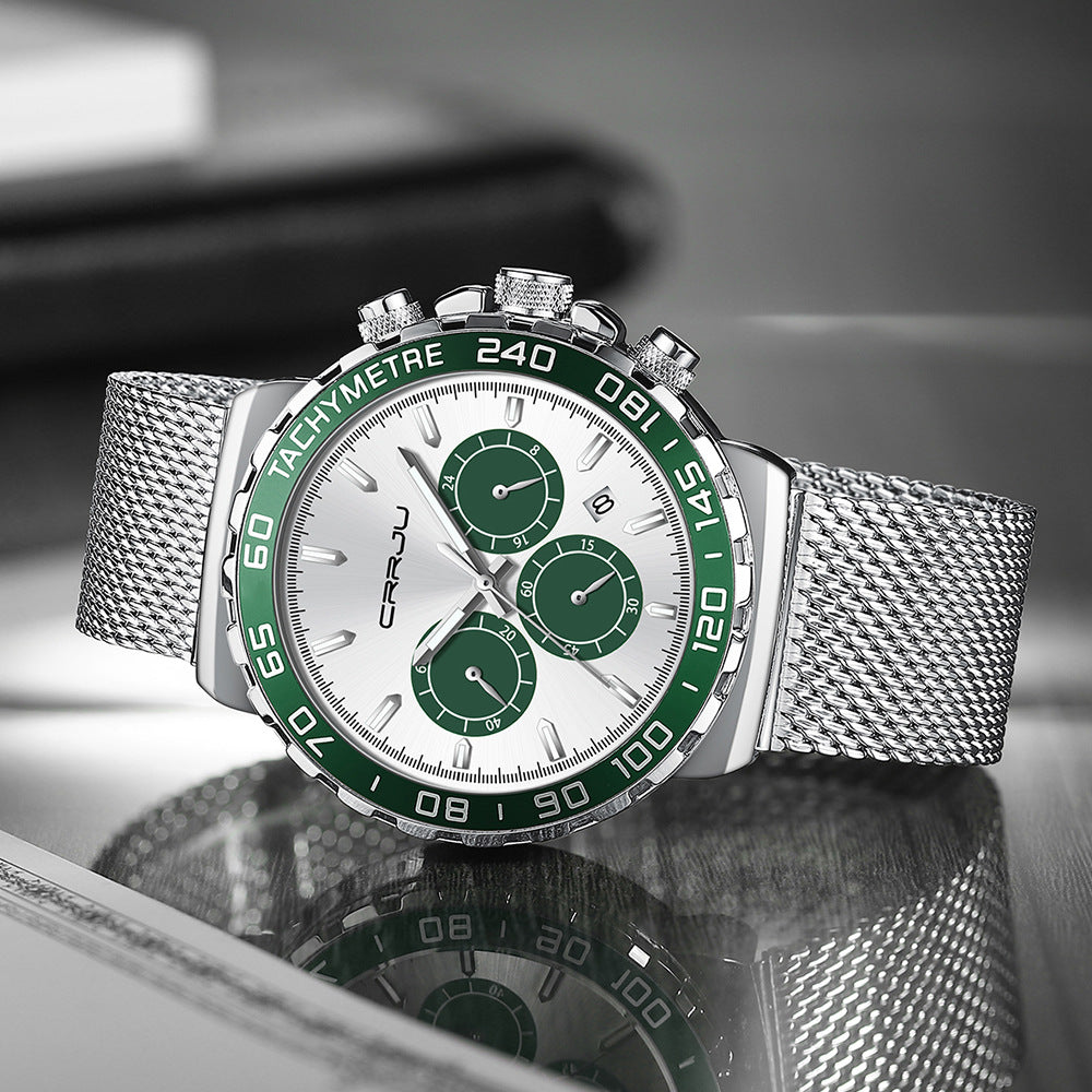 The Men's Multifunctional Three-eye Six-pin Sports Watch is the ultimate accessory for the modern man who values both style and functionality. Designed with a sporty aesthetic, this watch is perfect for various activities, whether you're hitting the gym, going for a run, or enjoying a casual day out. With its multifunctional features, this watch is not just a timepiece; it's a reliable companion for your active lifestyle.