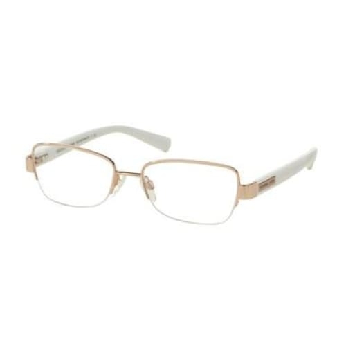 The Michael Kors MK 7008-1080 Mitzi IV Rose Gold Rectangular Women's Metal Eyeglasses are a stunning addition to any woman's eyewear collection. Designed with elegance and sophistication in mind, these eyeglasses are perfect for those who appreciate contemporary designer styles. The half-rim design not only enhances the overall aesthetic but also provides a lightweight feel, making them comfortable for all-day wear.
