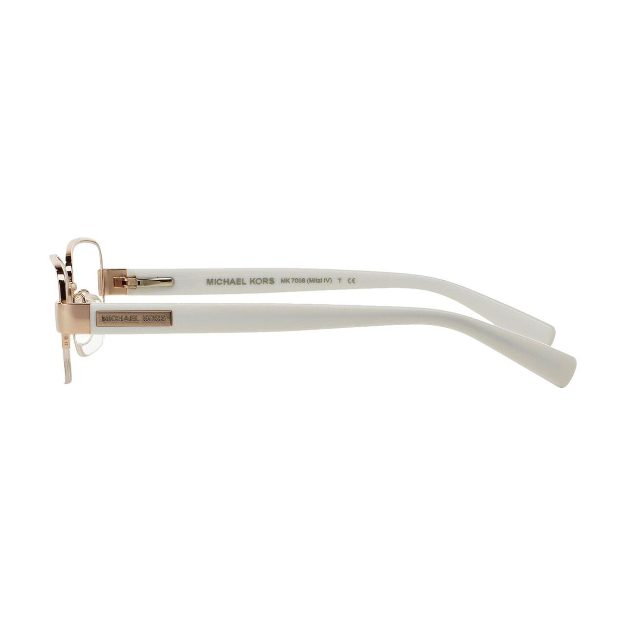 In summary, the Michael Kors MK 7008-1080 Mitzi IV Rose Gold Rectangular Women's Metal Eyeglasses are a perfect blend of style, comfort, and quality. With their trendy design and versatile appeal, they are an essential addition to any woman's eyewear collection.