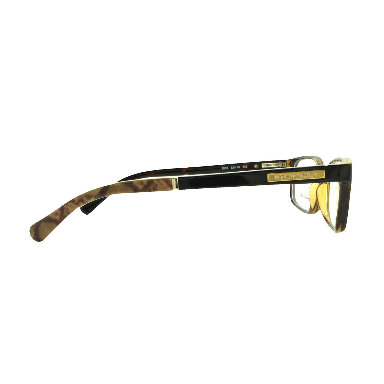 The Michael Kors MK 8006-3010 eyeglasses feature a lens size of 52mm, a bridge size of 16mm, and a temple length of 140mm. These dimensions are designed to provide a comfortable fit for most women. The demo lenses included with the eyeglasses allow you to try them on and see how they look before adding your prescription lenses.