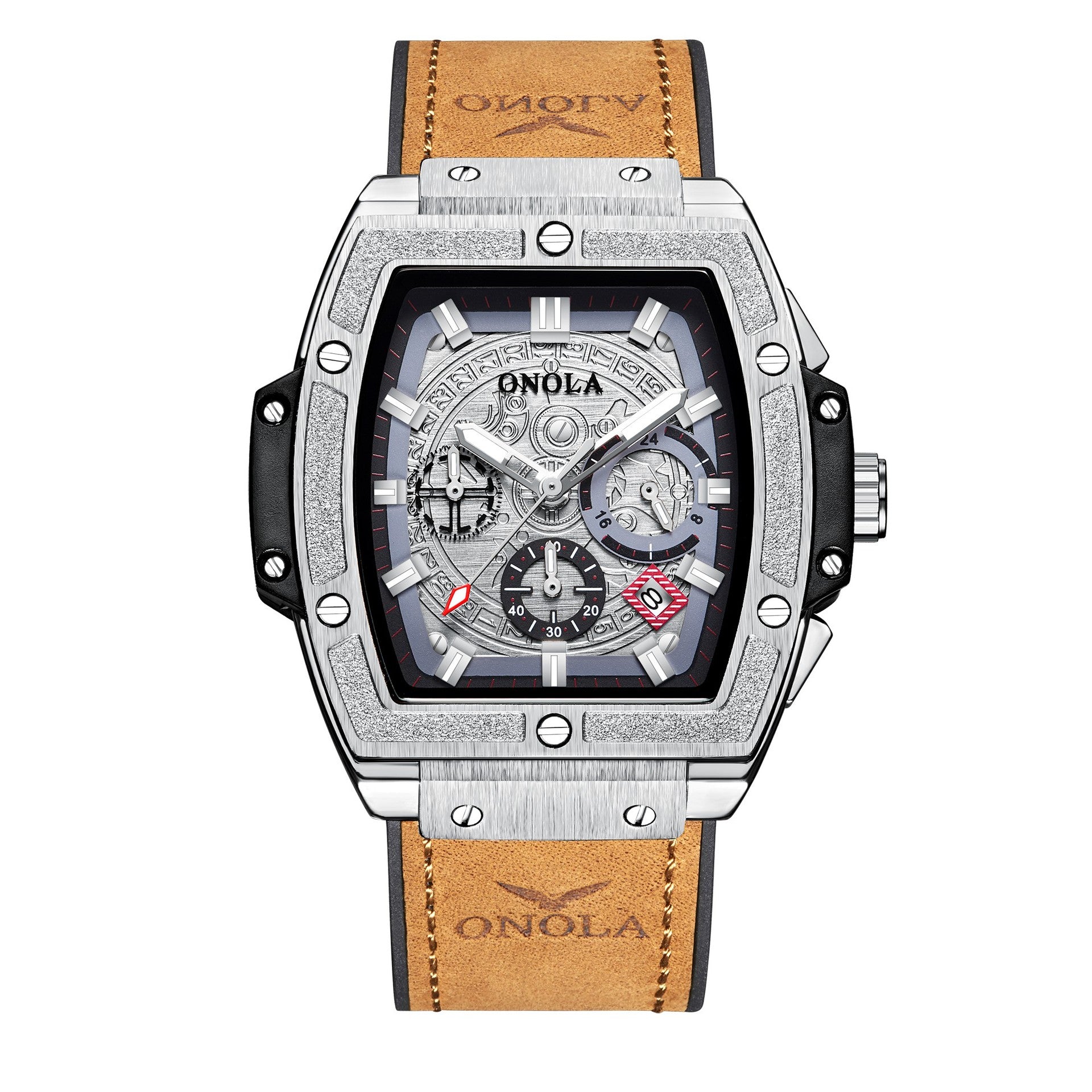 The Multifunctional Men's Quartz Watch is crafted from high-quality materials. The strap is made from genuine leather, providing both comfort and durability. The case is constructed from alloy, ensuring it can withstand daily wear and tear. The mirror is made from mineral strengthened glass, which is resistant to scratches and impacts, keeping your watch looking new for longer.