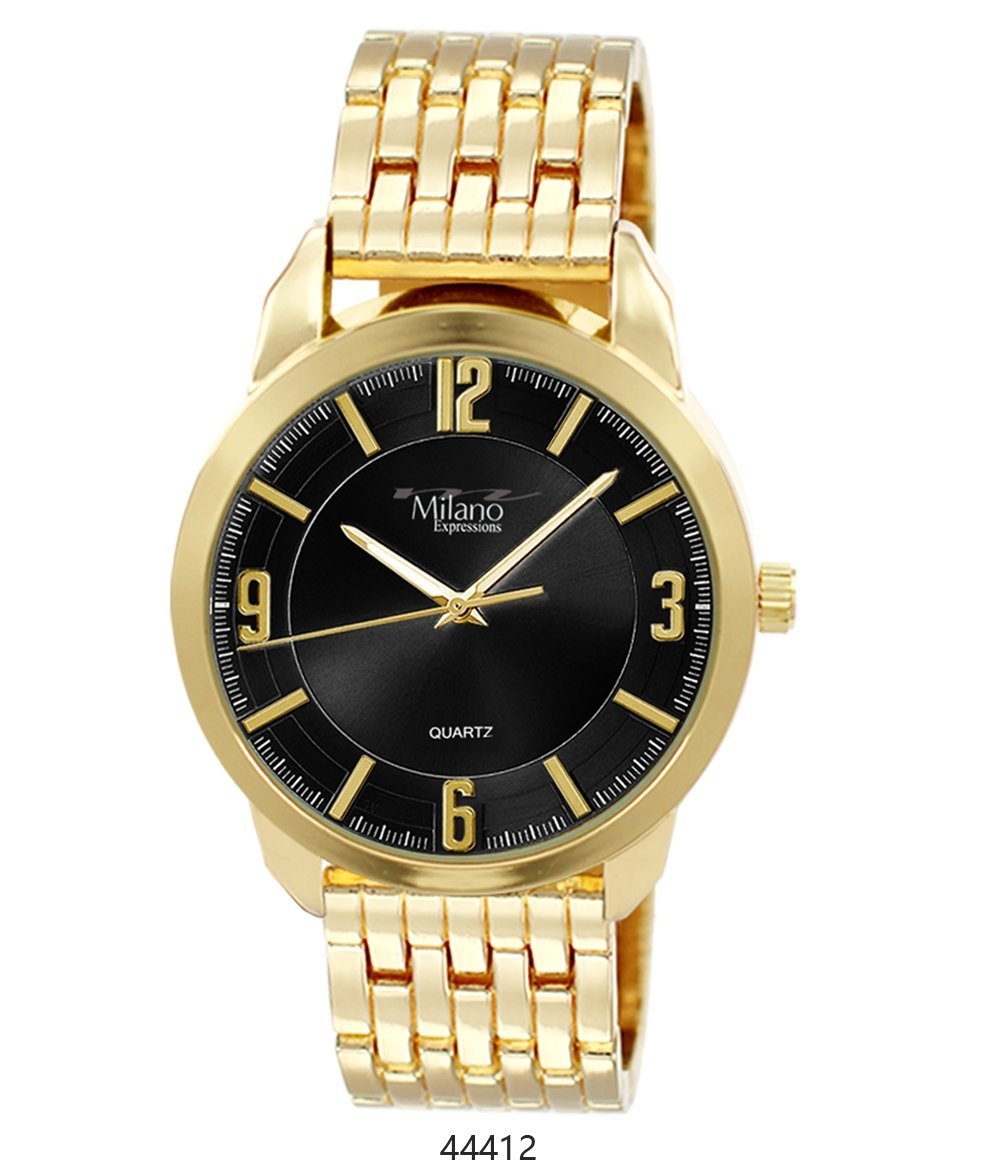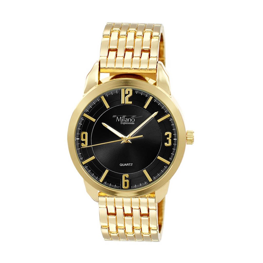 The Penalosa Gold Metal Band Watch by M Milano Expressions is a stunning timepiece that combines elegance and functionality. With its sophisticated design, this watch is perfect for both casual and formal occasions. The striking black dial contrasts beautifully with the gold metal band, making it a standout accessory for any outfit.