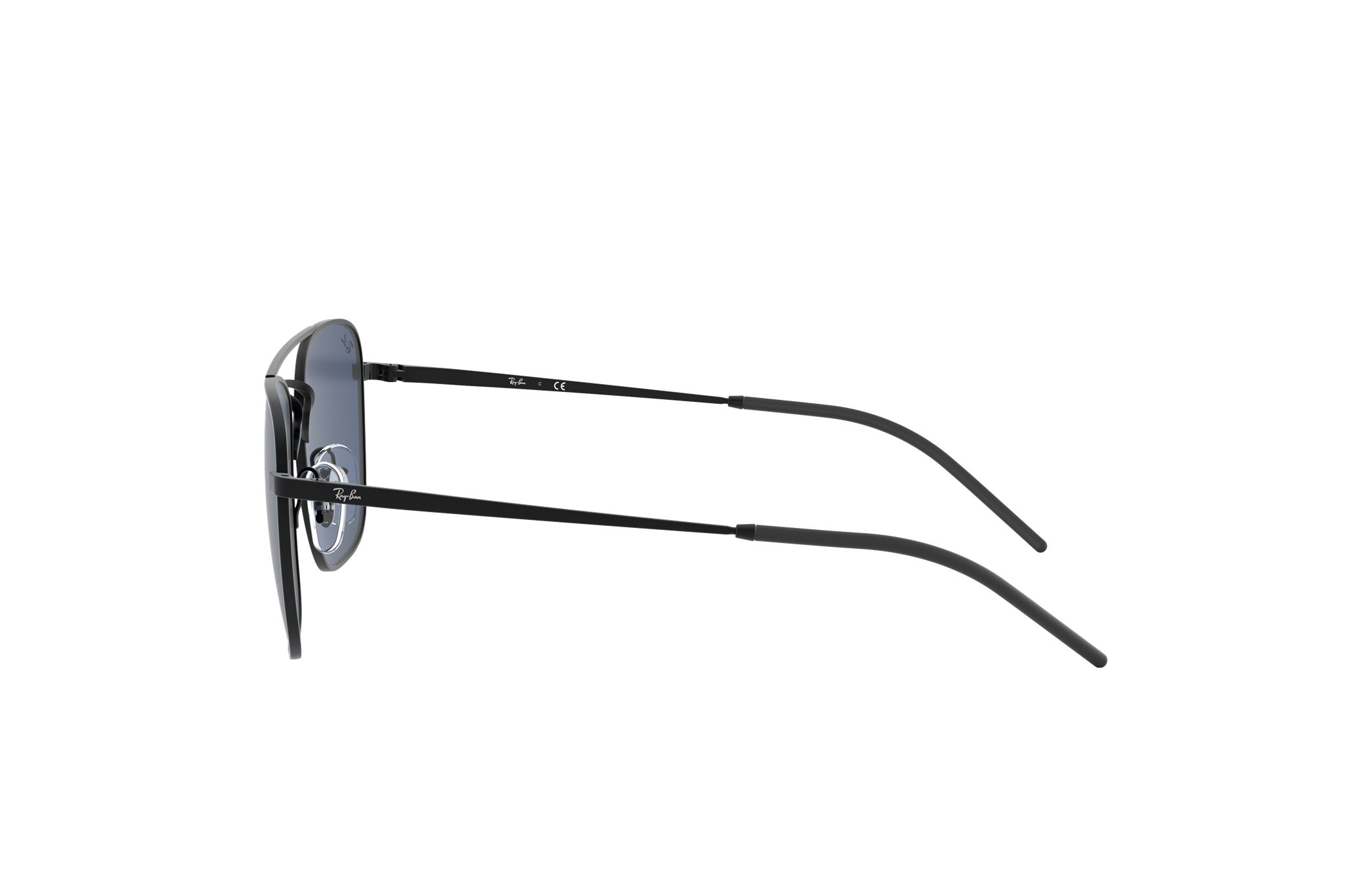 Ray-Ban RB3588-901480 Matte Black Square Blue Lens Metal Sunglasses with a sleek design and blue lenses.