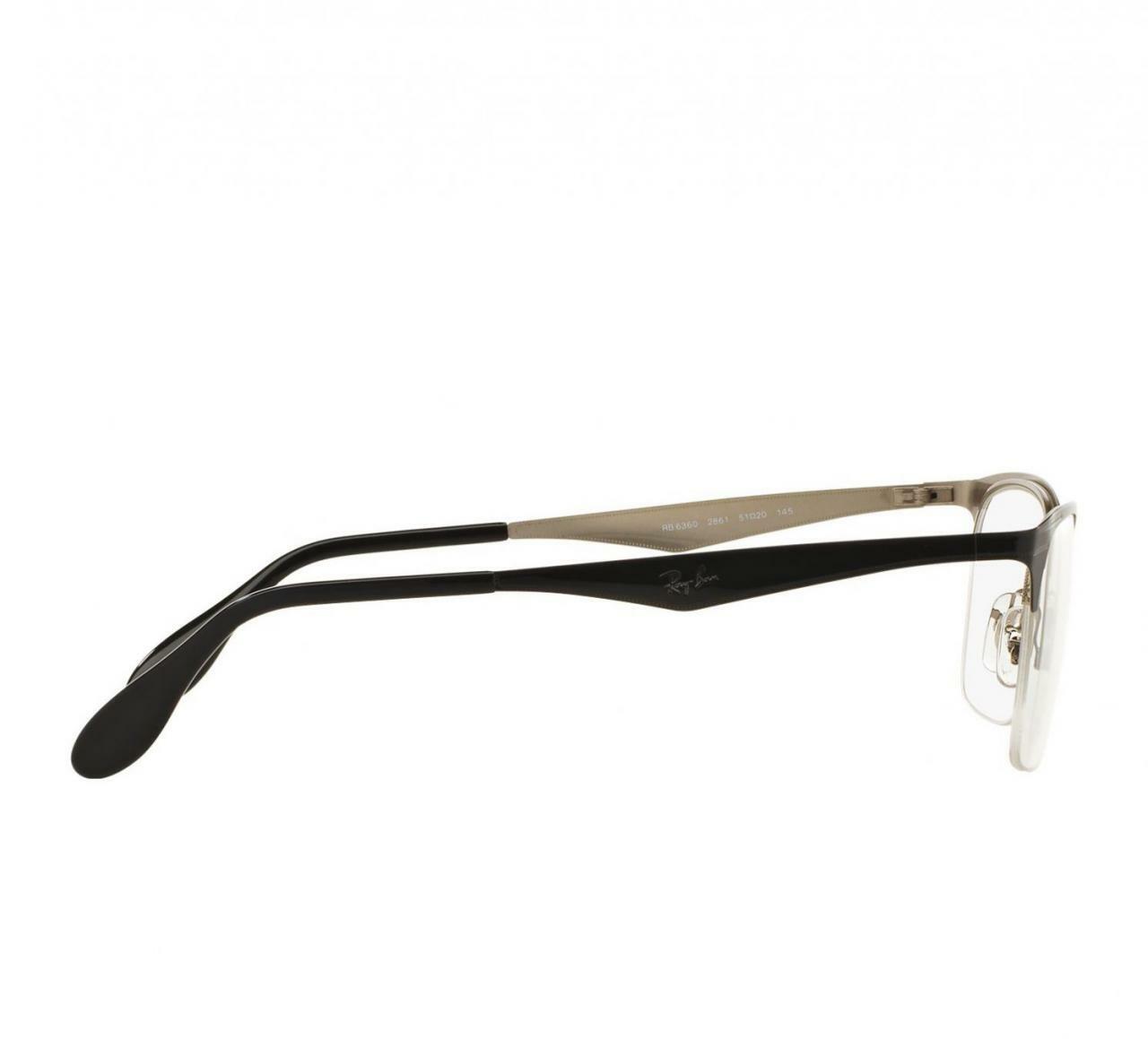 The frame color of the Ray-Ban RB6360-2861 is a striking combination of black and gunmetal, which adds a touch of sophistication. With a lens size of 49mm, bridge size of 20mm, and temple length of 140mm, these eyeglasses are designed to fit comfortably on your face. The demo lens allows you to customize your prescription lenses, making them suitable for everyday wear.